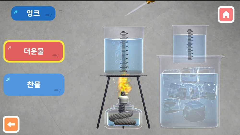 'AR_온도에 따른 입자 확산속도'는 물의 온도에 따라 용질이 녹는 양이 달라지는 실험을 할 수 있는 어플입니다.