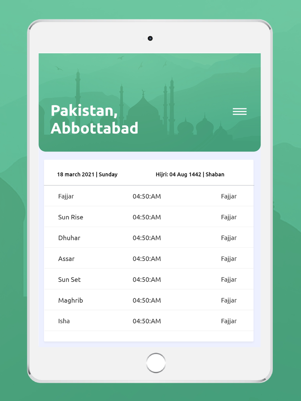 • Provides accurate Islamic Prayer (Salat) timings, along with timings of Sun Rise, Sun Set, etc.