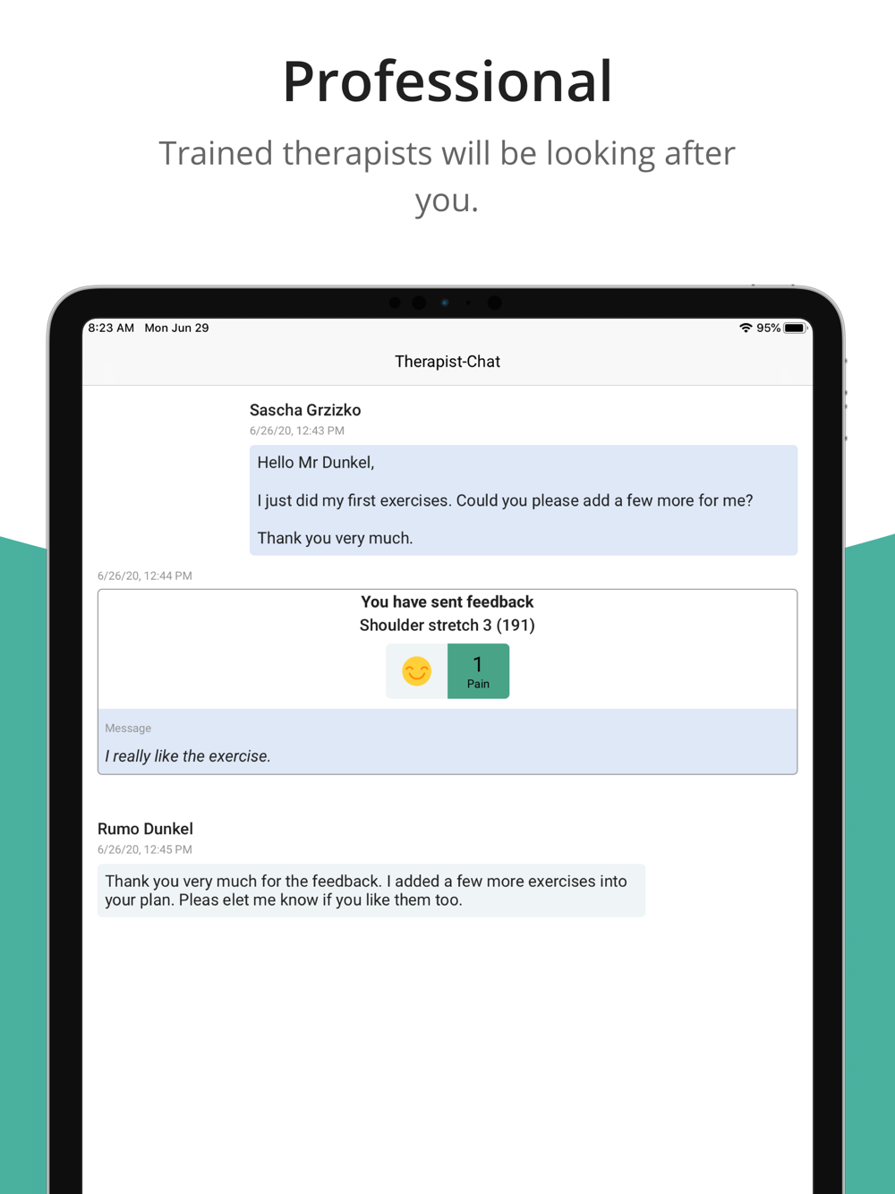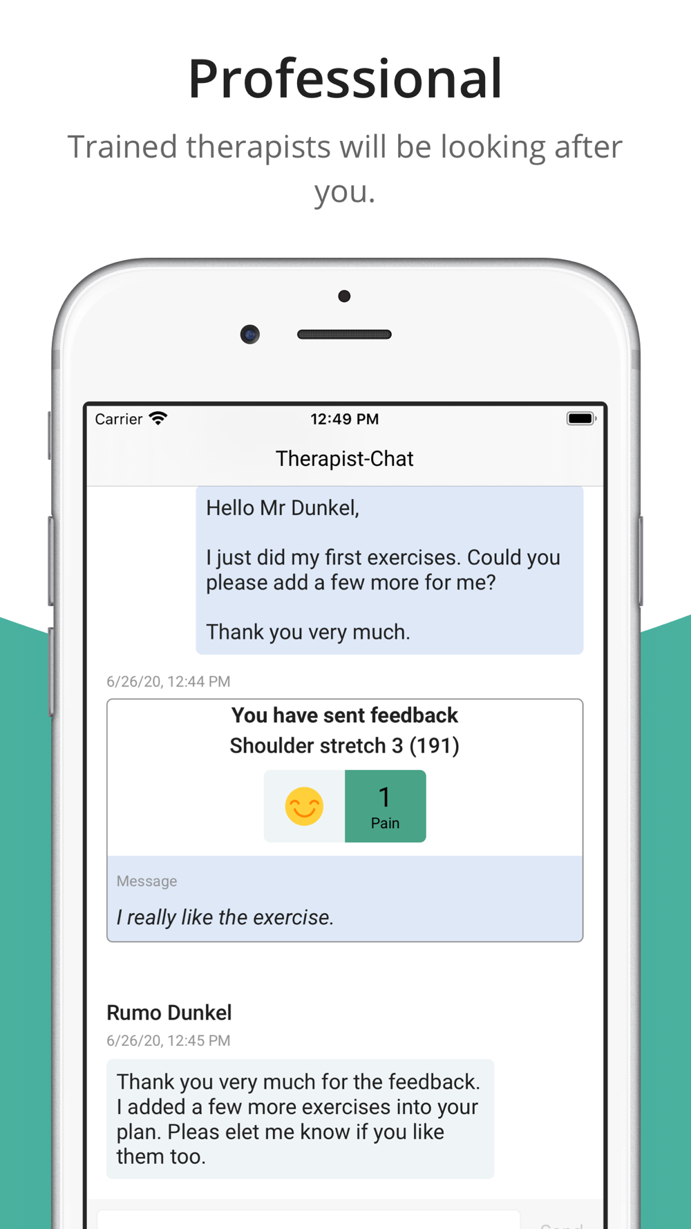 your exercises, please message your therapist via the app. In case of technical