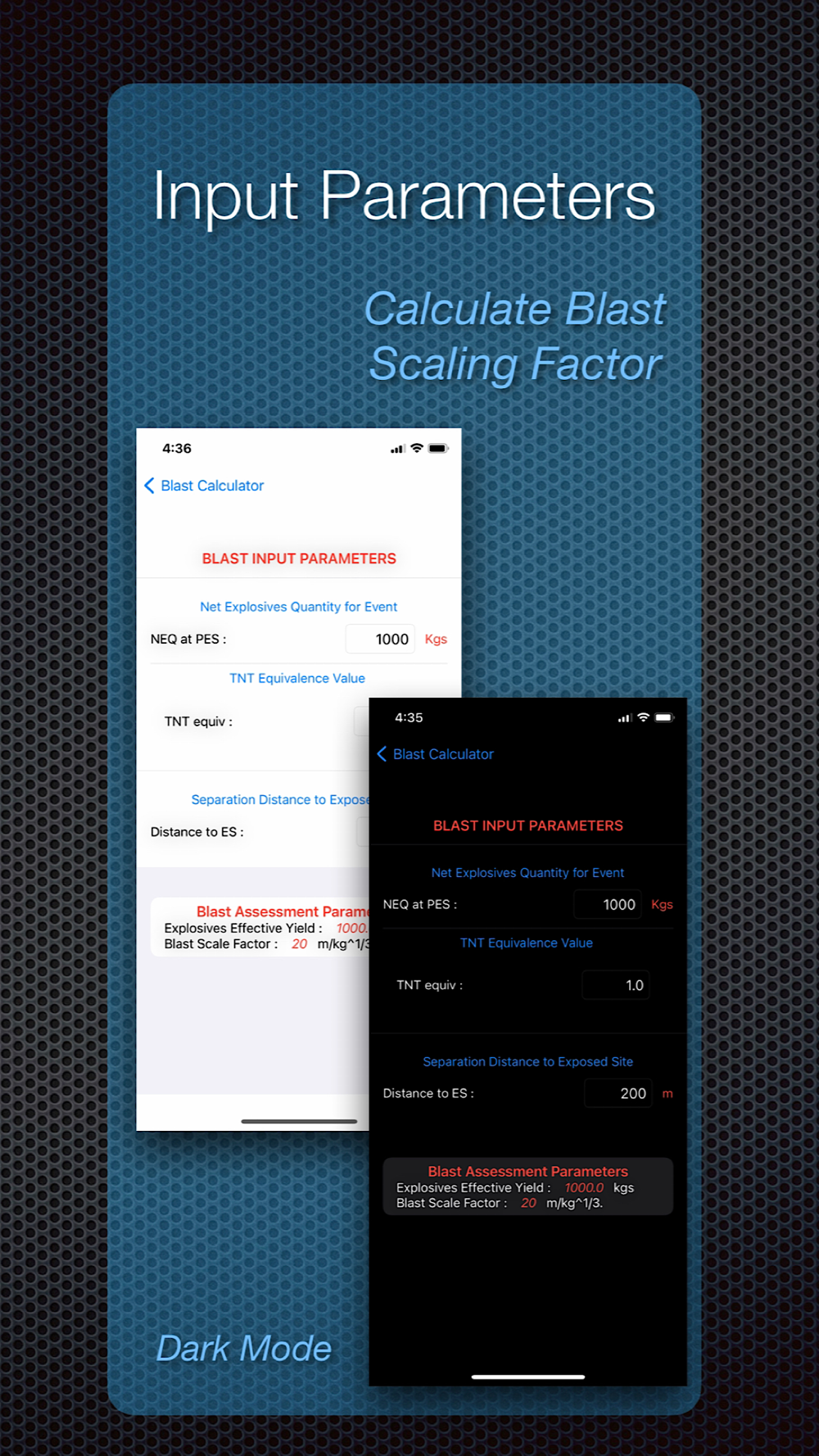 ExpSAFE Blast Calculator is an iPhone application that has been developed to enable quick blast wave predictions for Dangerous Goods Class 1.1 and support Quantity-Distance reviews.  The application can be considered as a Level 1 Analysis tool that is intended to estimate blast effects from the detonation of a given quantity of explosives at a specified distance. The Blast Calculator sacrifices complexity for simplicity and ease of use.  Users should note that this application is only focused on blast and the resulting estimations for injury and damage do not consider the other contributing effects (fragmentation, debris, and thermal radiation) resulting from an explosion. Importantly this application is not intended for safety critical analysis or formal decision making purposes (refer the disclaimer statement for more information).