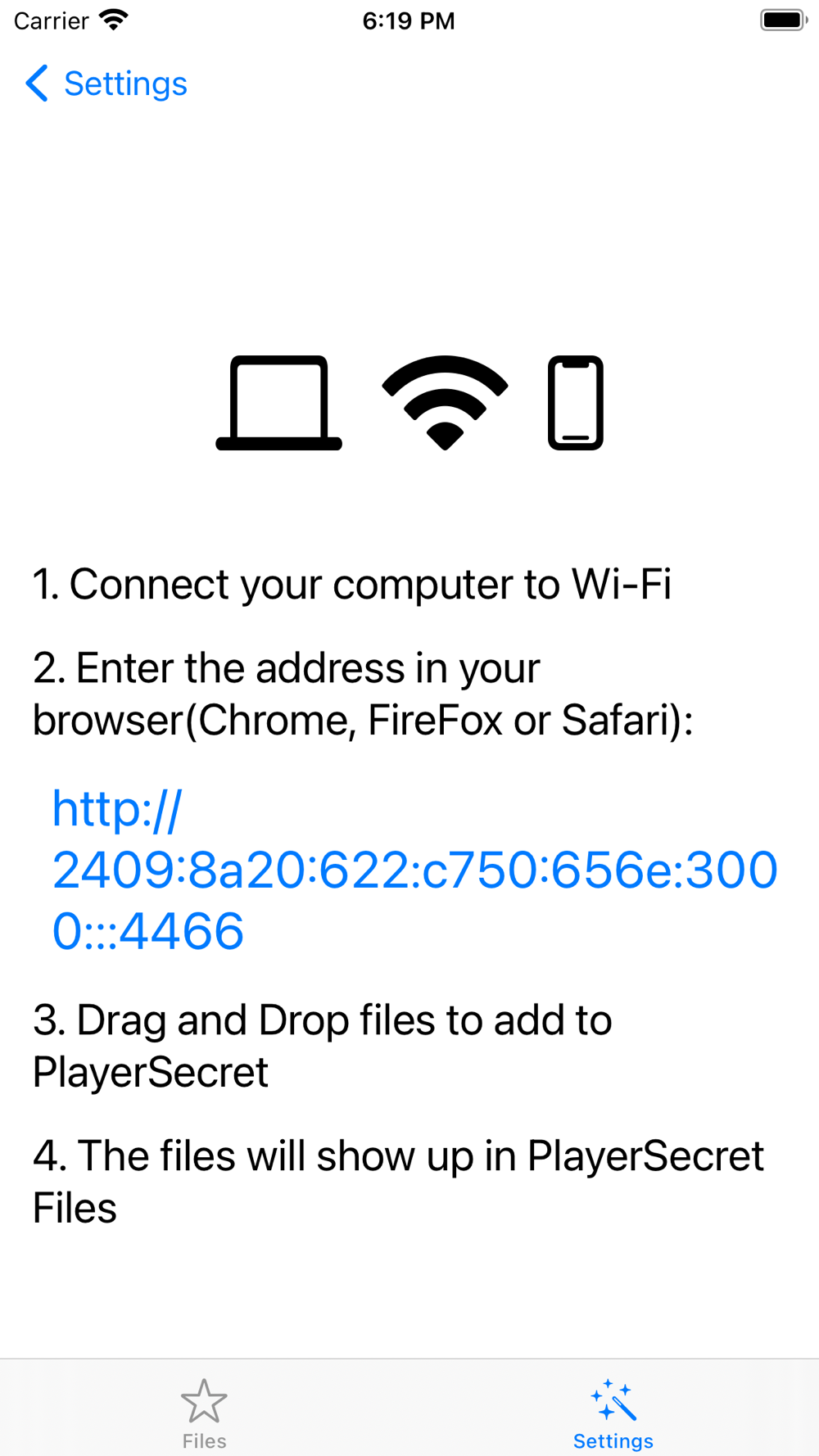 2.Upload files via Wi-Fi