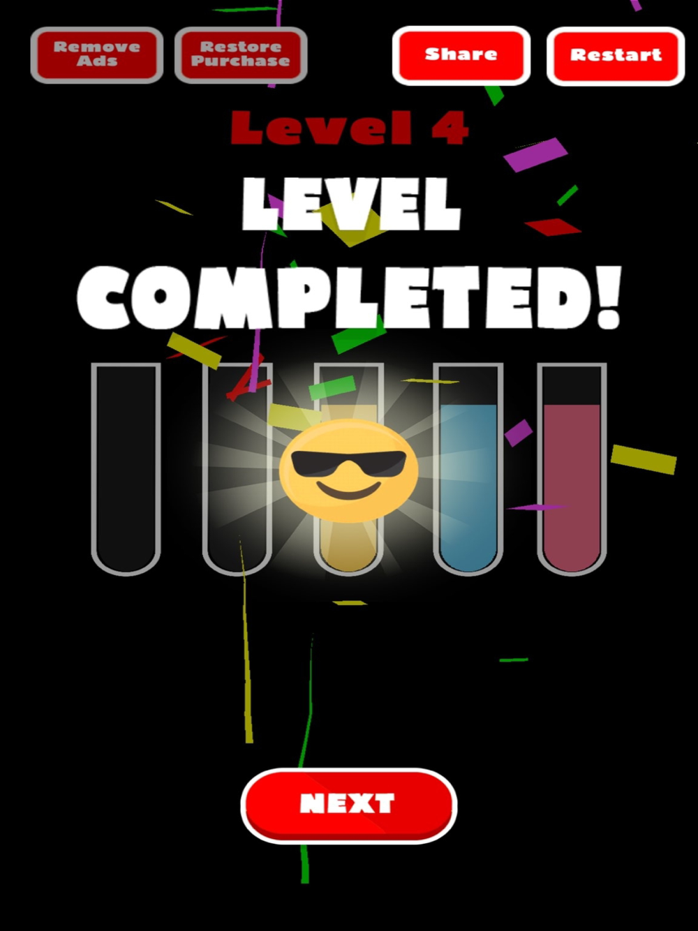 In the Liquid Sort Puzzle & pouring games, to test your logic, you need to solve lots of puzzles. Liquid wala games seem very easy but after clearing some stages it will be complicated. One wrong move at the sort and fill game can lead to difficulty. So play this game with enthusiasm. This liquid puzzle is a challenging but relaxing game for your mind. Use your brain to liquid pour in the game. There are unlimited levels in the sort and fill game. So you can play the keyword 23 liquid juice game for such a long time. You can say this liquid filling game is never-ending fun. If you are stuck at any level of this color water game, you need to restart the level. But make sure you don't get stuck on any level.