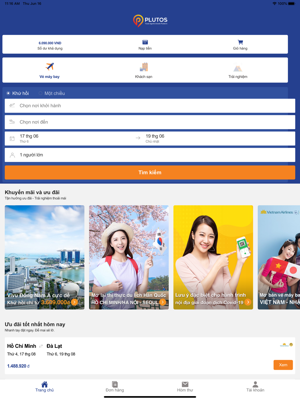 Plutos Agent là ứng dụng đặt khách sạn, vé máy bay và các dịch vụ du lịch cho khách hàng đại lý, với sản phẩm phong phú, giá cạnh tranh, và nhiều tính năng tiện lợi. Plutos Agent giúp các Đại lý du lịch và vé máy bay có thể: