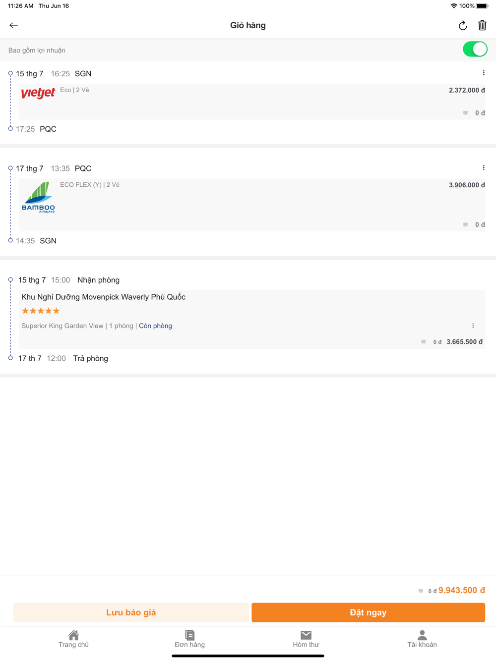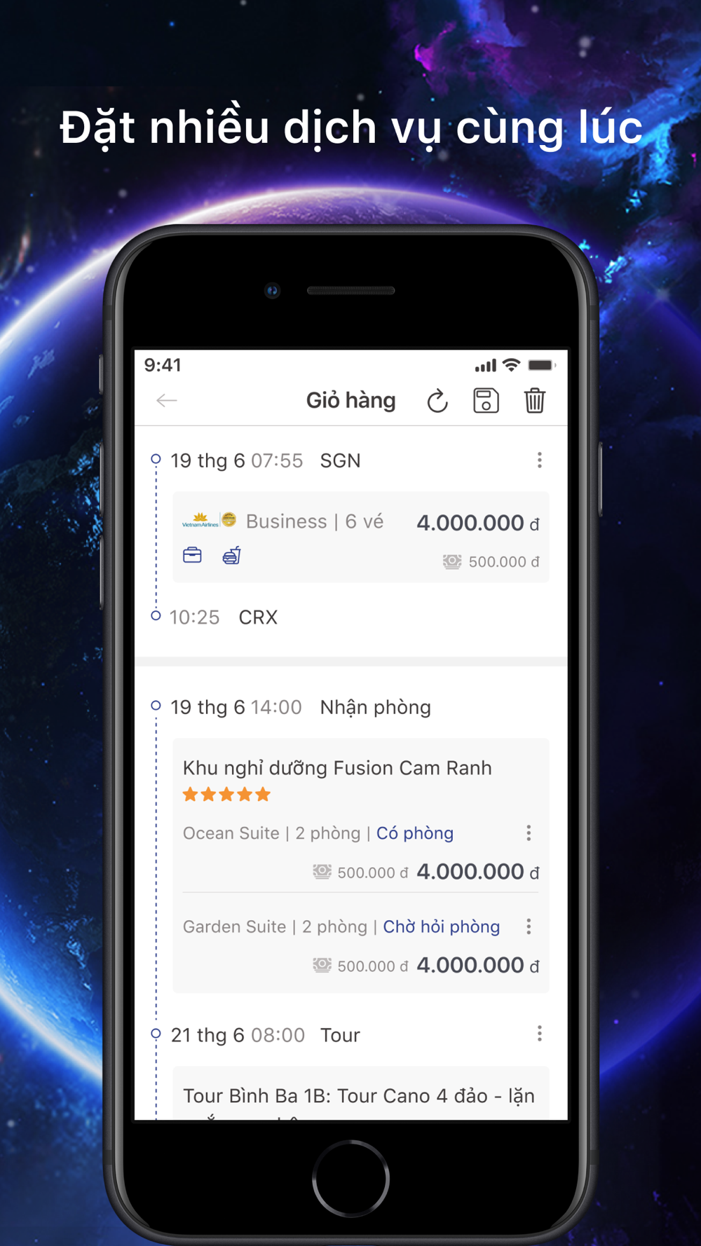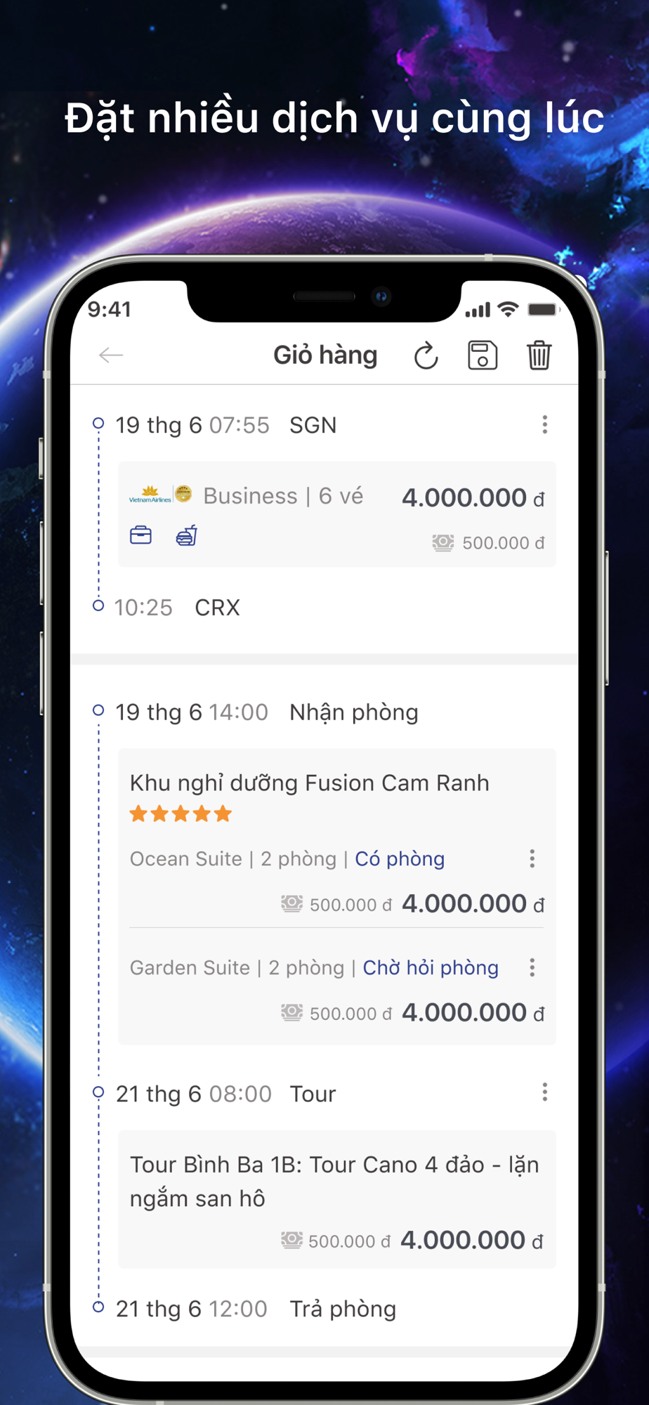 Đặt cùng lúc nhiều loại sản phẩm dịch vụ du lịch (vé máy bay, khách sạn, các trải nghiệm địa phương), bất kể lúc nào bất kể đâu