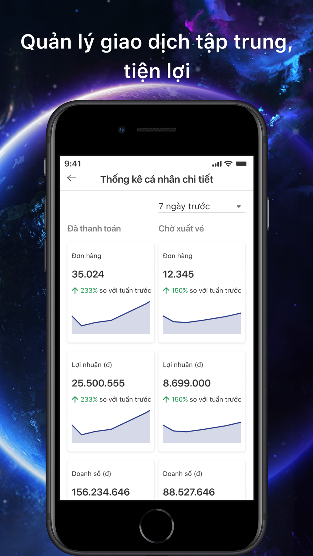 Quản lý doanh thu, lợi nhuận, tình trạng đơn hàng toàn bộ hệ thống đại lý của bạn một cách tập trung, số liệu sẵn sàng mọi lúc mọi nơi