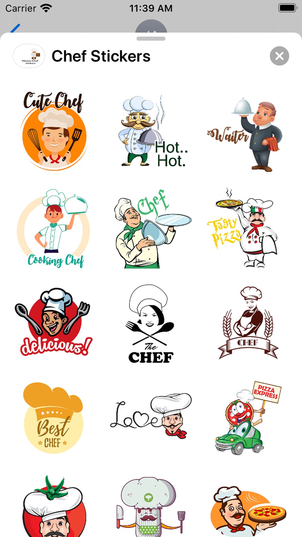 Choose your favourite chef Sticker and make a messages.