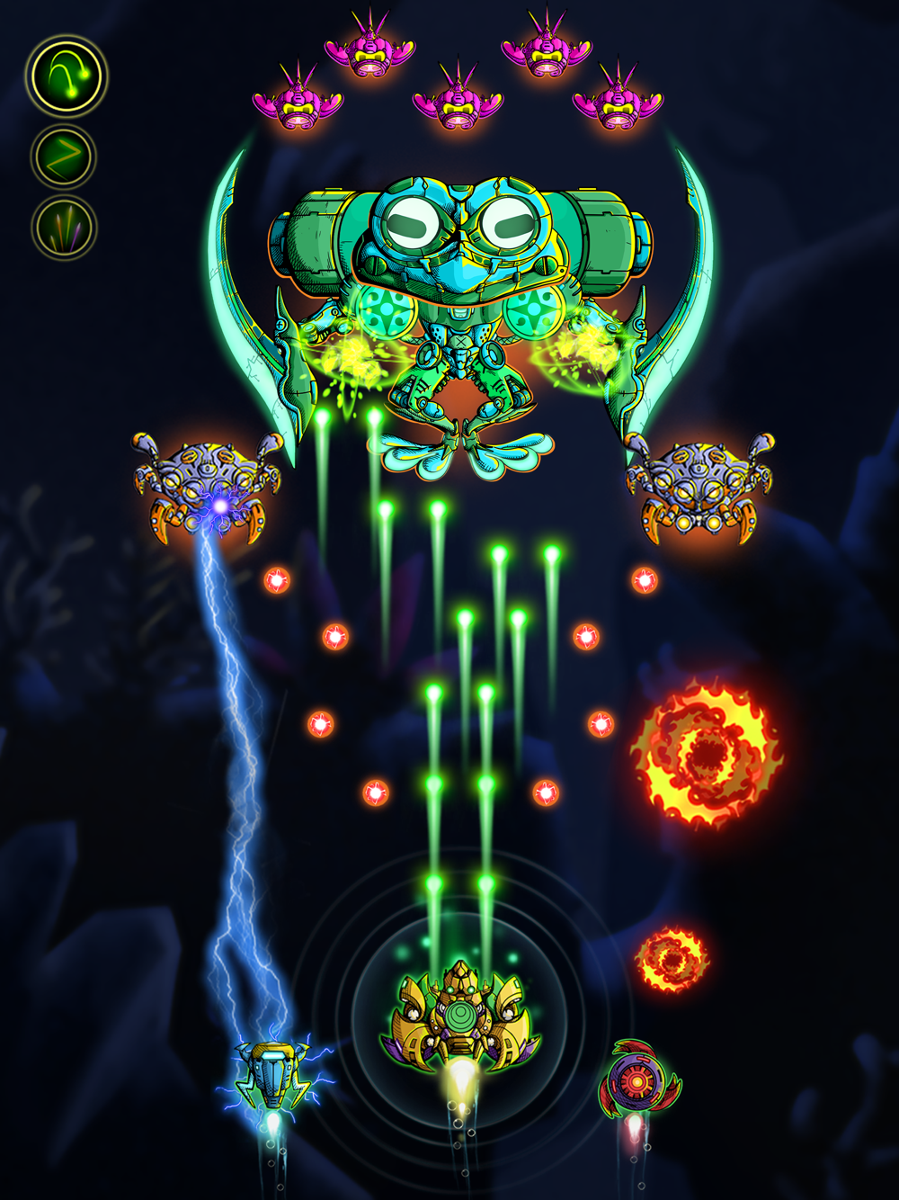 - Awesome submarines with unique attacks like in no other galaxy shooter games