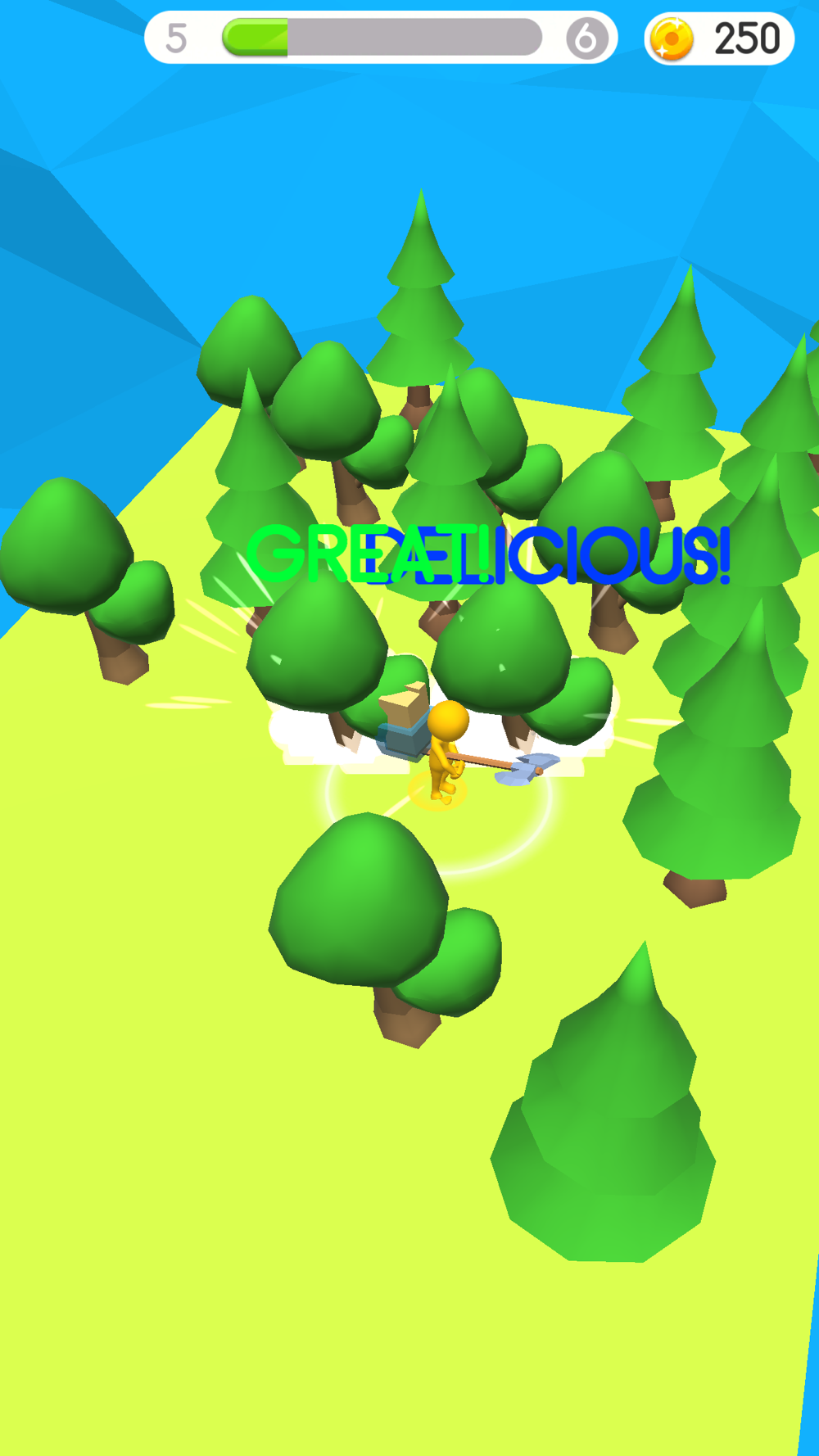 Simple gameplay holding a touch! Move through the levels and cut more and more trees and wood.