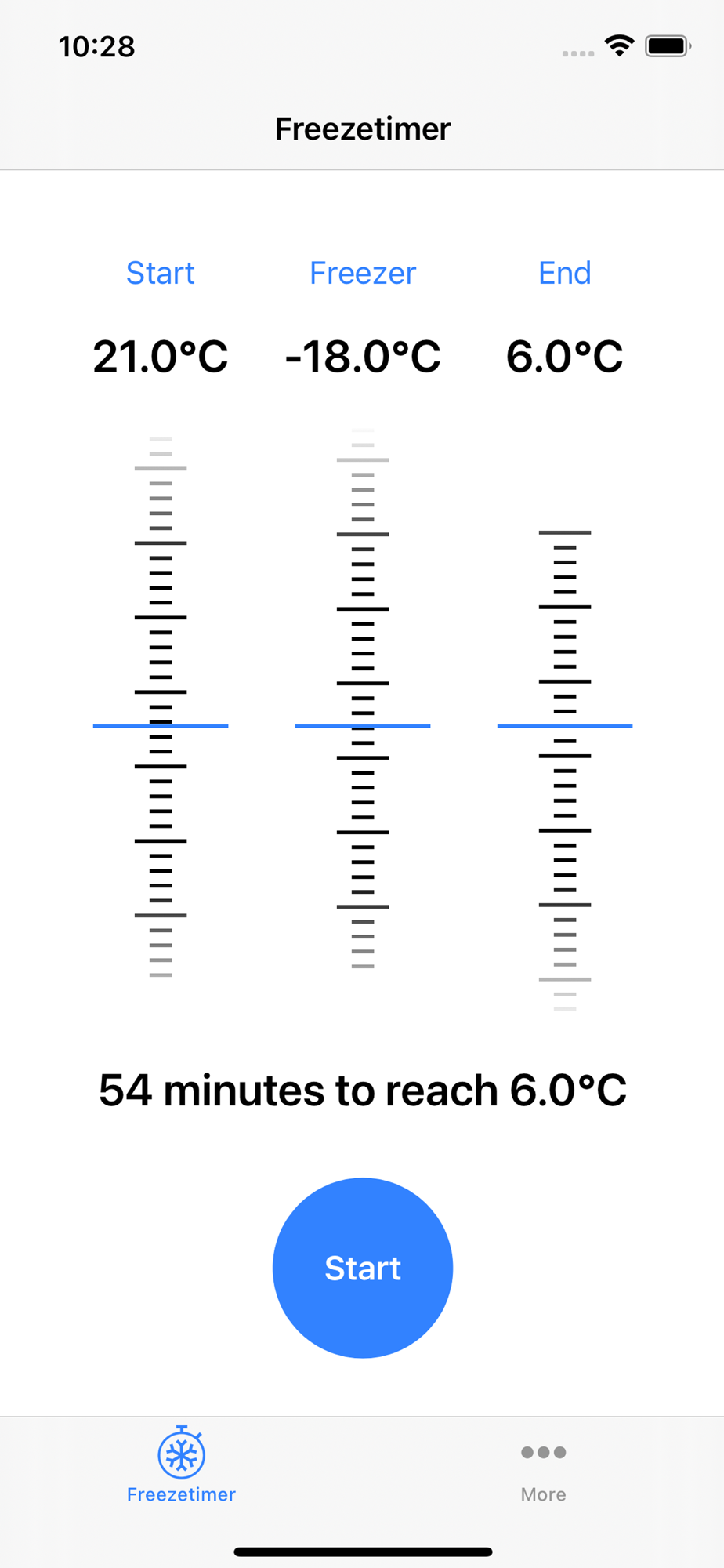 All you have to do is set the initial temperature of your beverage, usually room temp. Then set the temperature of your freezer and finally set the desired temperature for your beverage and Freezetimer will calculate for how long you have to have your beverage in the freezer fort it to reach that perfect coldness.