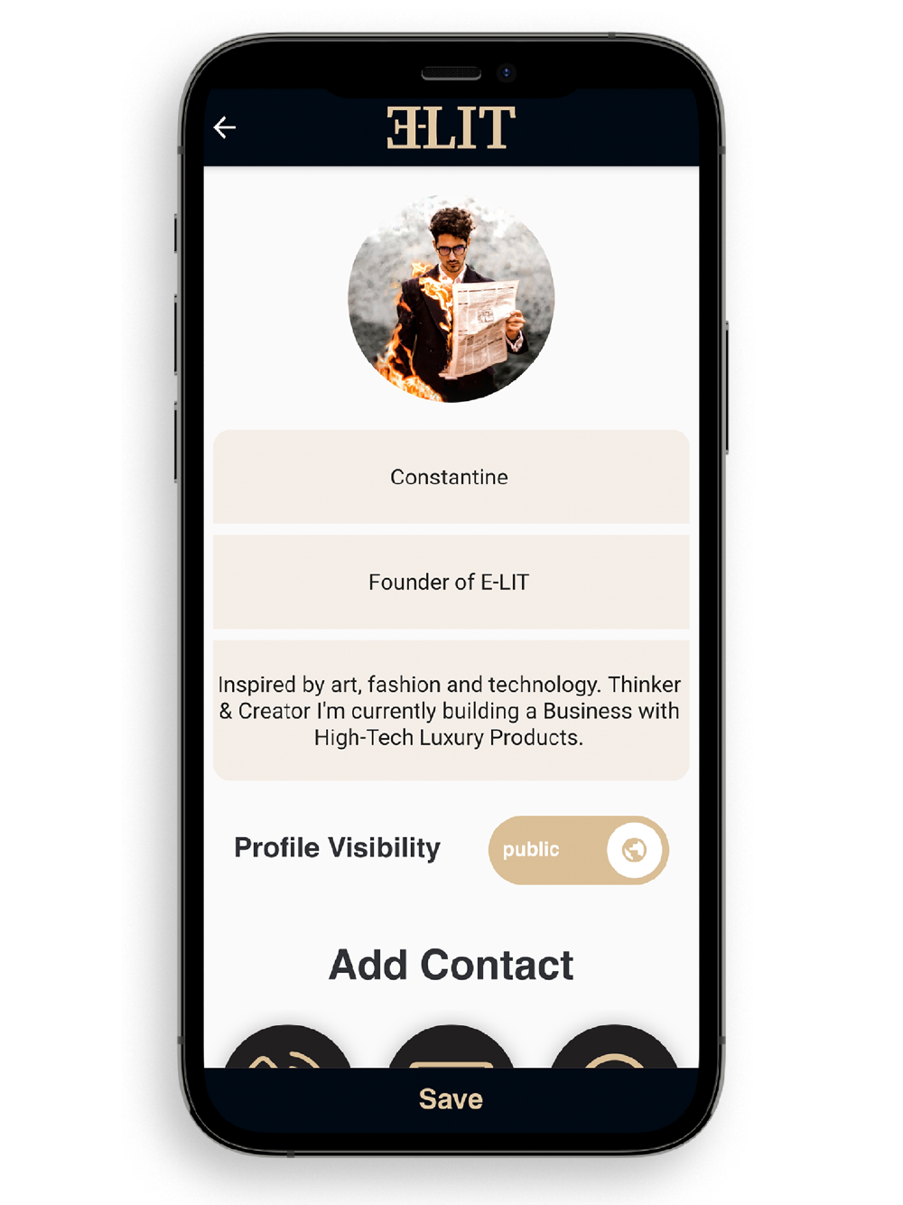 The E-LIT app enables you to easily access your E-LIT profile and choose what you share with your E-LIT Card. You can also make your E-LIT profile Private if you wish.
