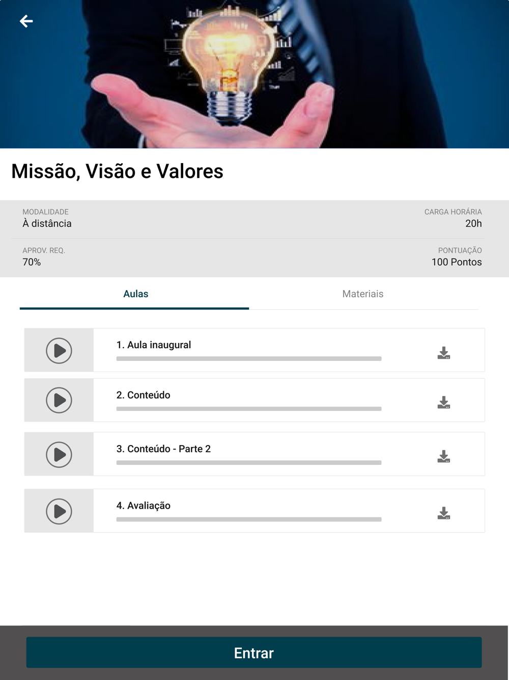 Esta plataforma foi idealizada e construída para o desenvolvimento profissional e pessoal. Nela, você acessará conteúdos específicos para a sua função, além de diversos cursos livres para acrescentar ainda mais o seu conhecimento.