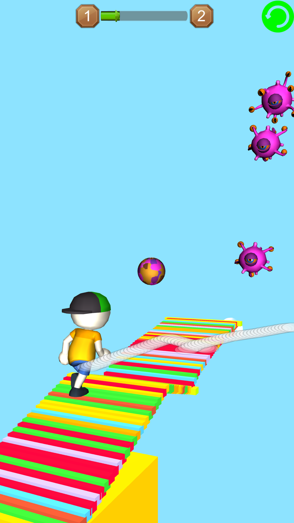 Scribble the screen to create stairs, collect the circle to defeat monster!