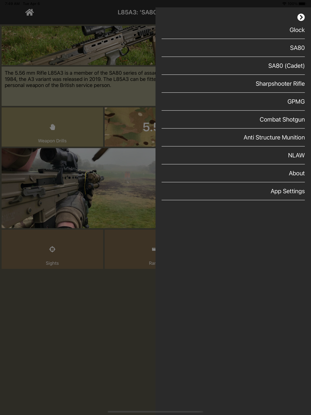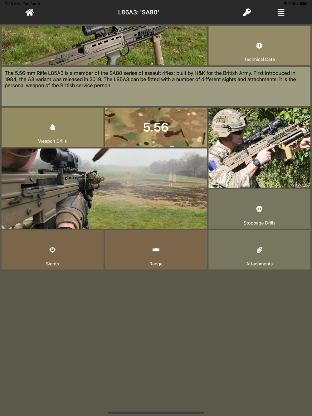 This resource places information about weapons used by the British Armed Forces in one handy format, giving you a wealth of skill at arms knowledge at your finger tips.