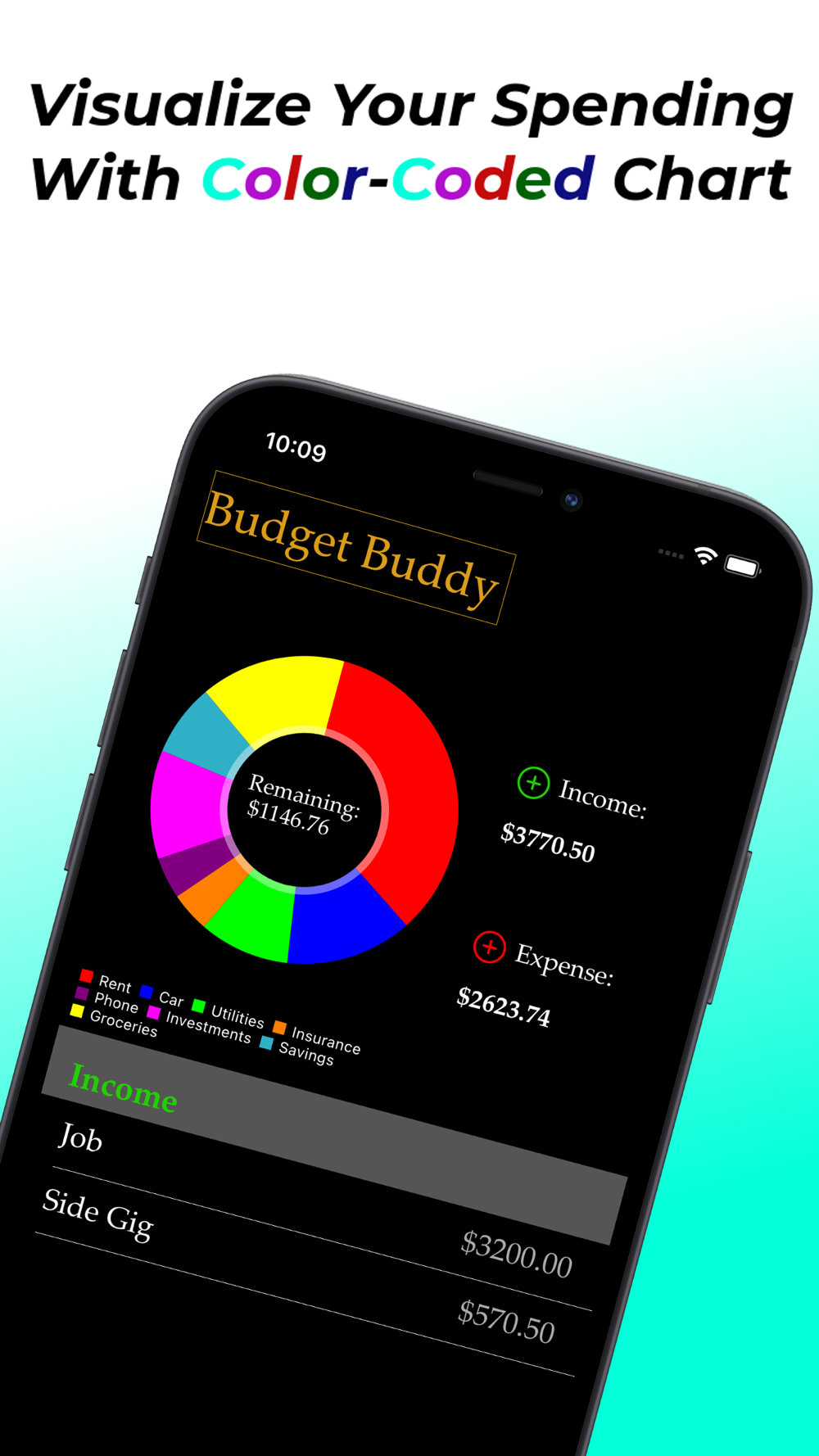 Budgeting your money is one of the best ways to keep your finances on track. Budgeting Buddy Finance can help you do just that! Simply enter your income sources with income amounts, along with your expenses, with expense amounts. Watch the pie chart represent the money you are spending, giving you the ability to visually see where your money is being spent and which expenses you can possibly trim.