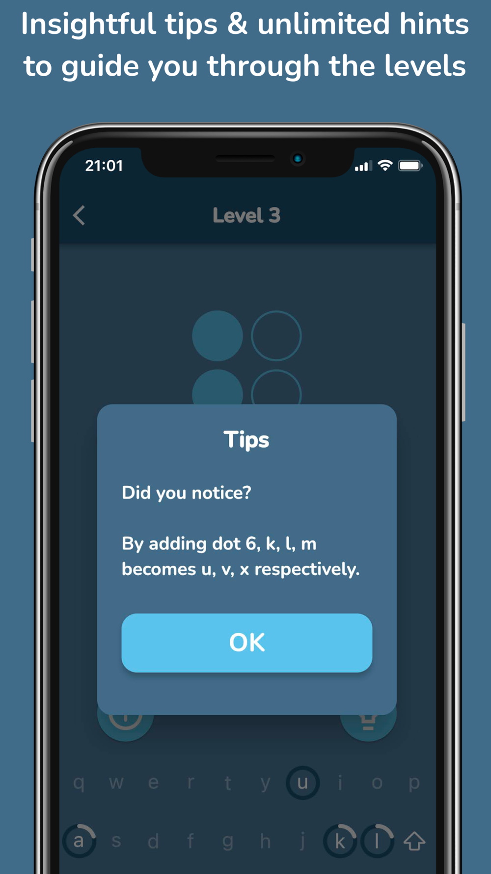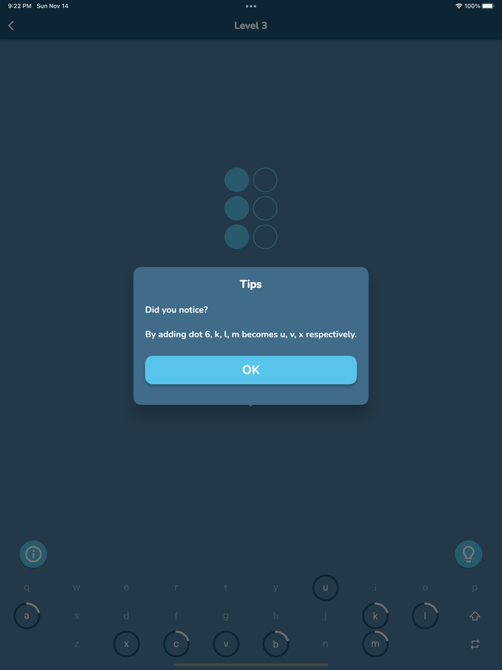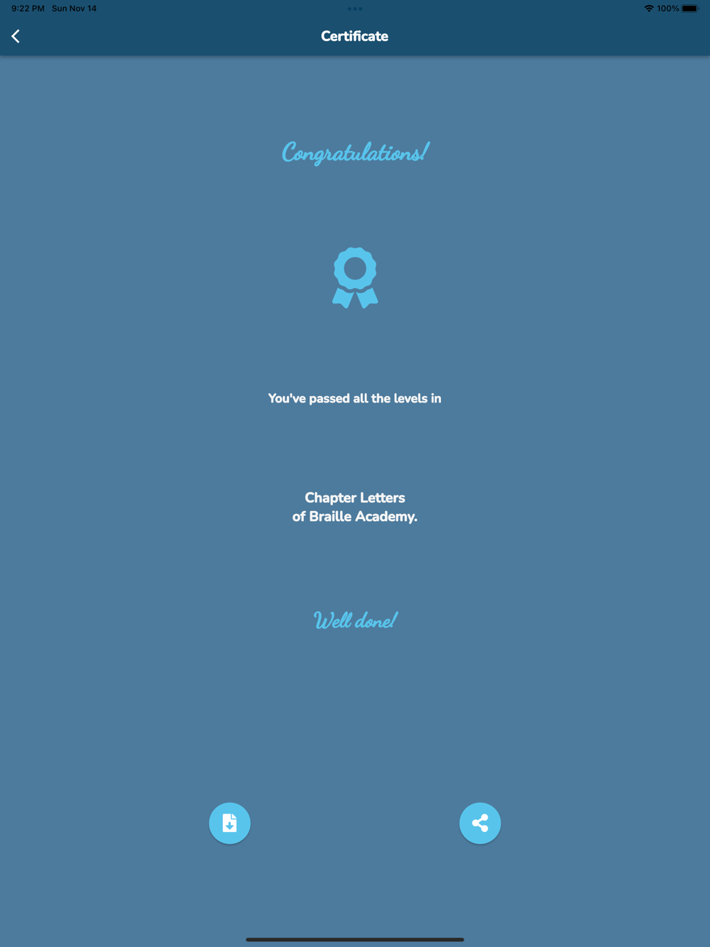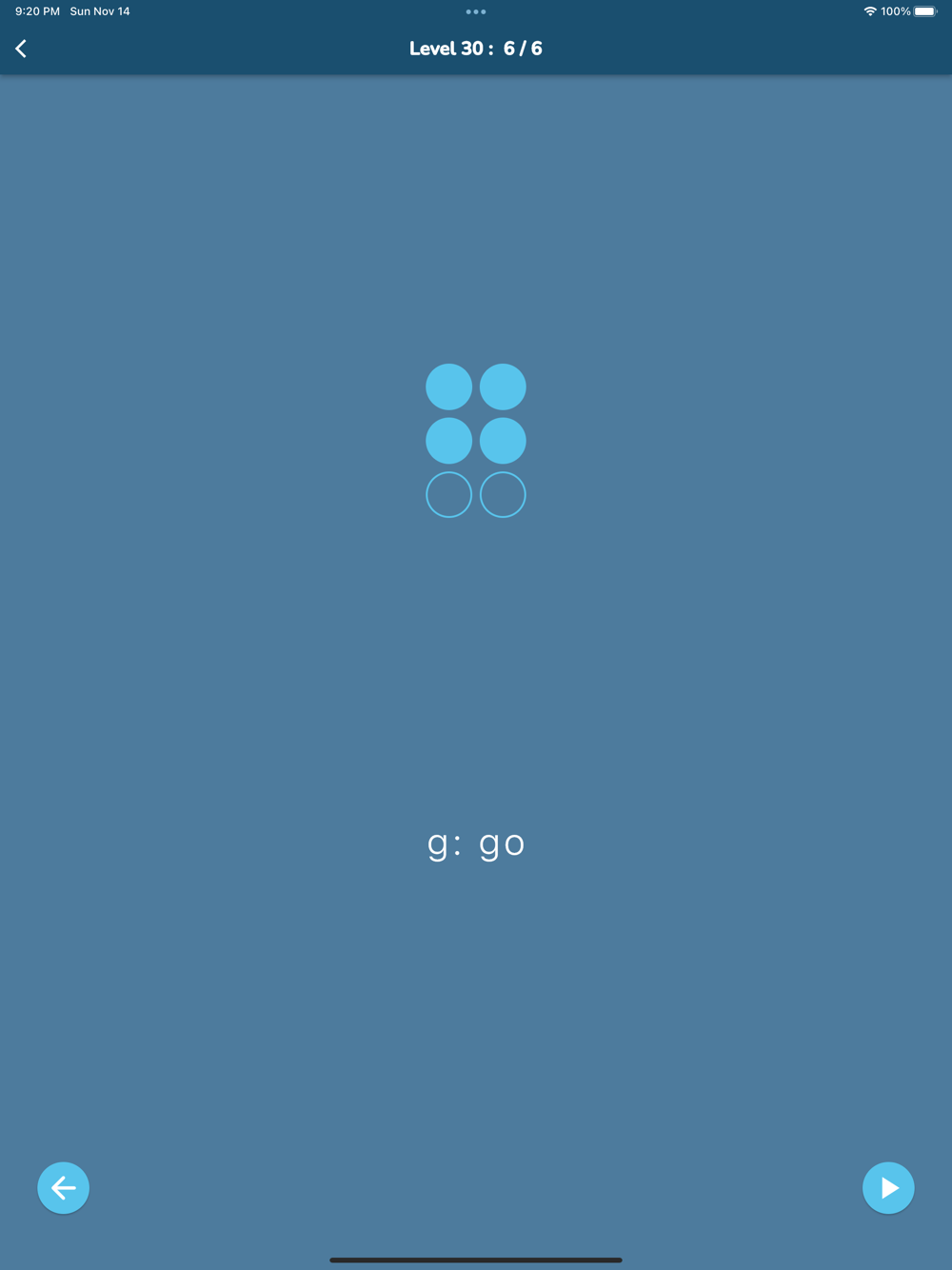 - 59 levels and 29 challenges in total teach, train and test more than 90% of the entire Unified English Braille knowledge.
