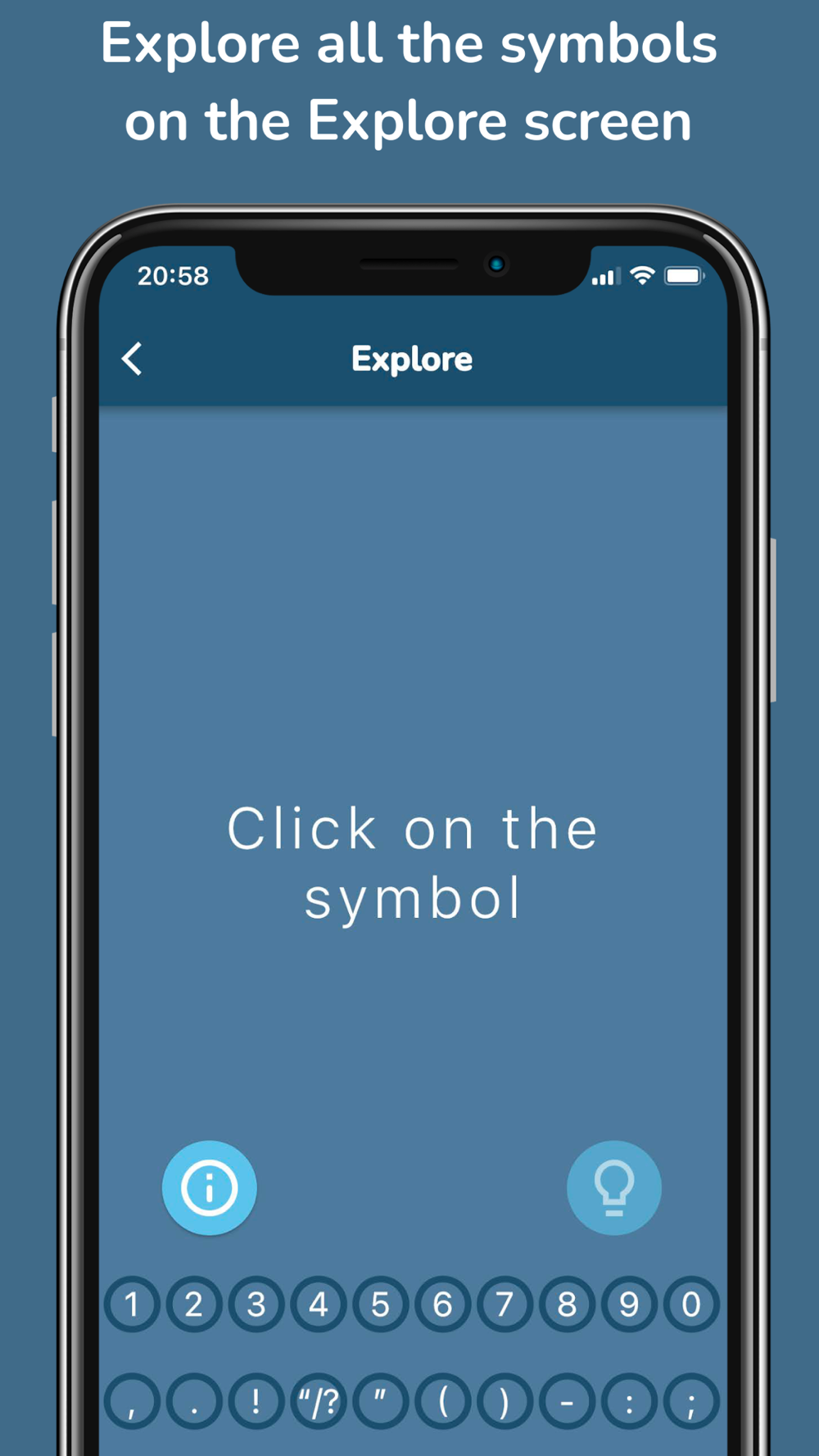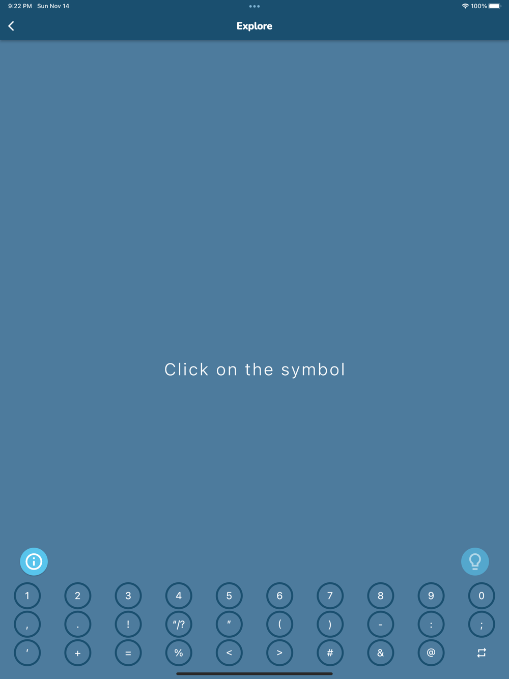 - On the Explore page, you can click and see the Braille representations of all the 26 letters, numbers 0 - 9, 12 punctuation marks and 8 special symbols.