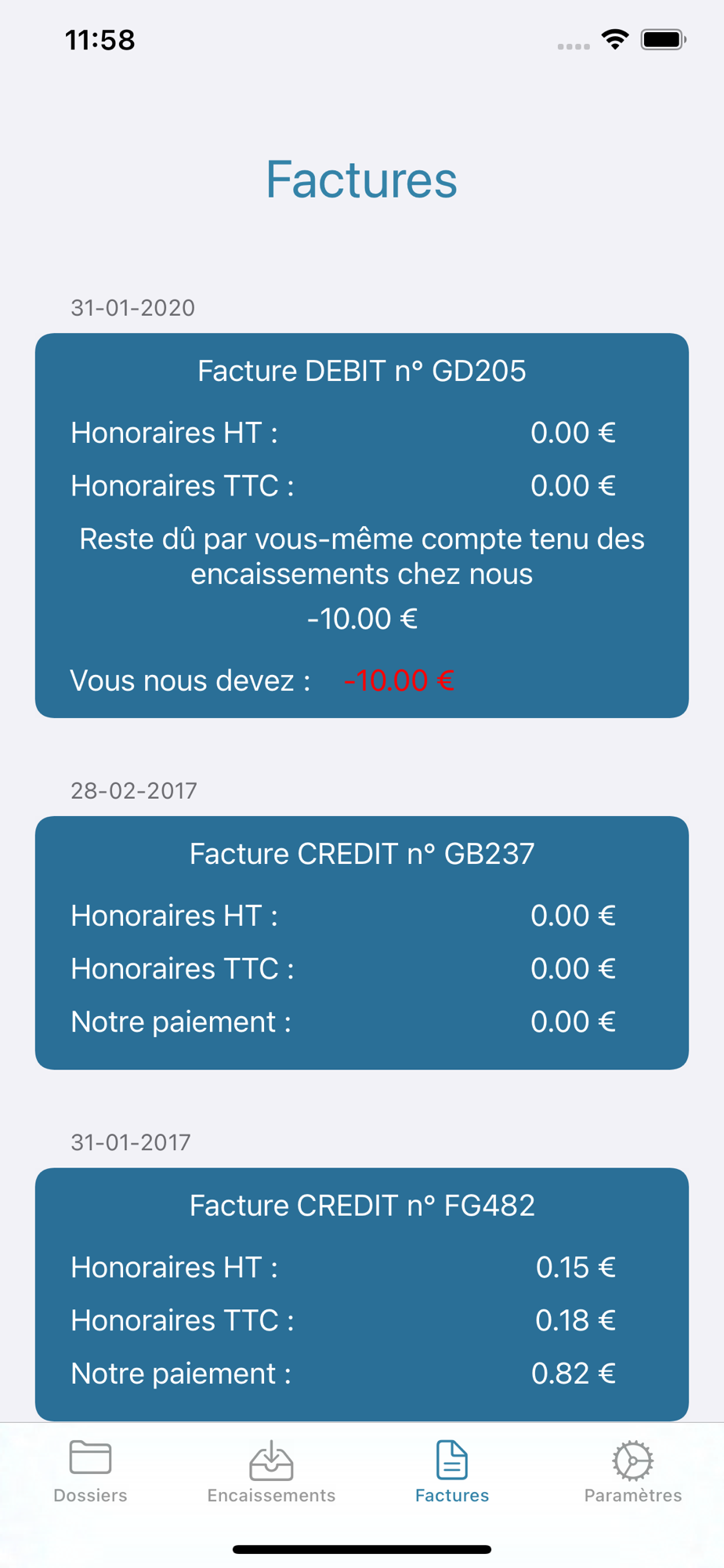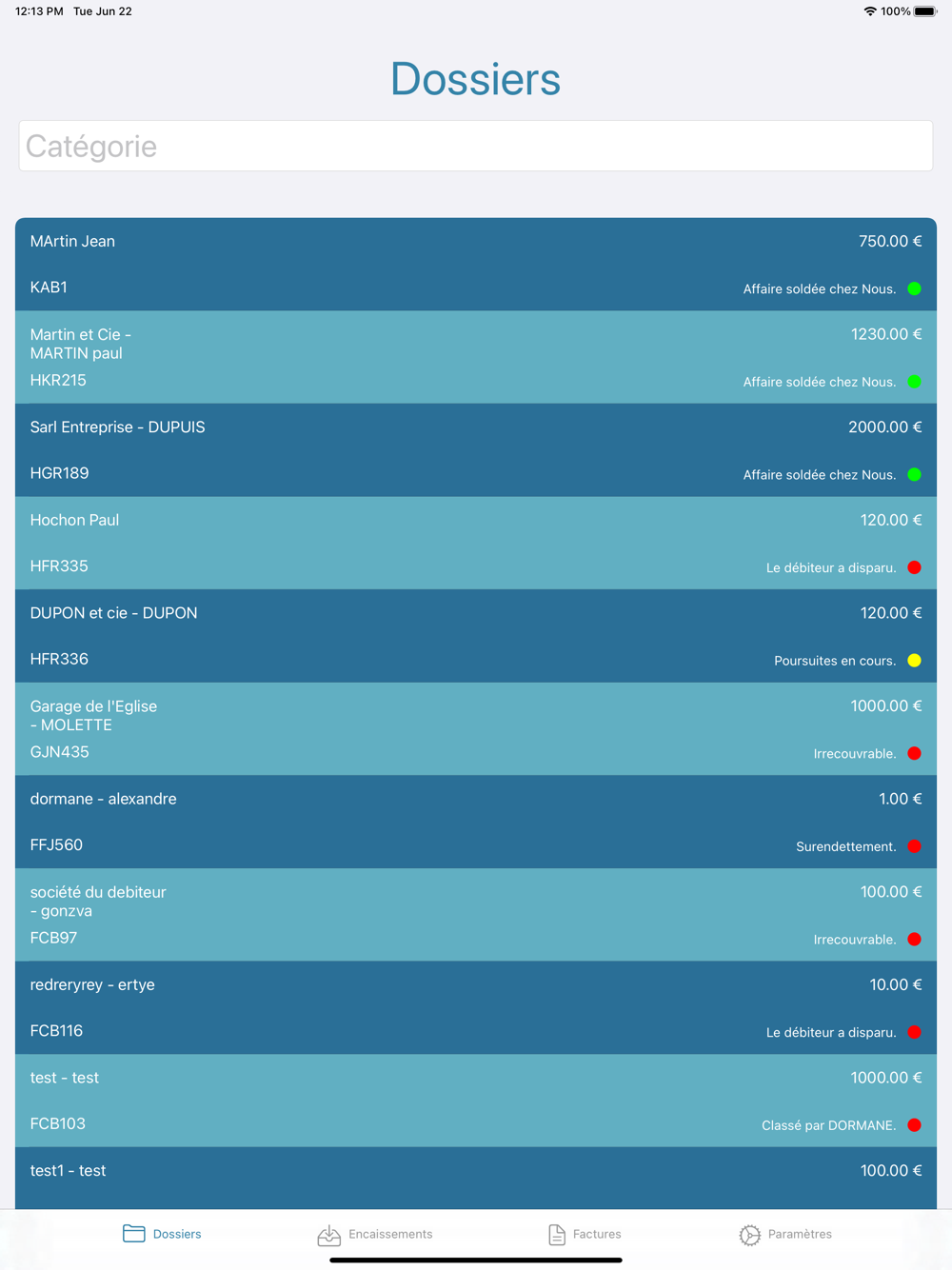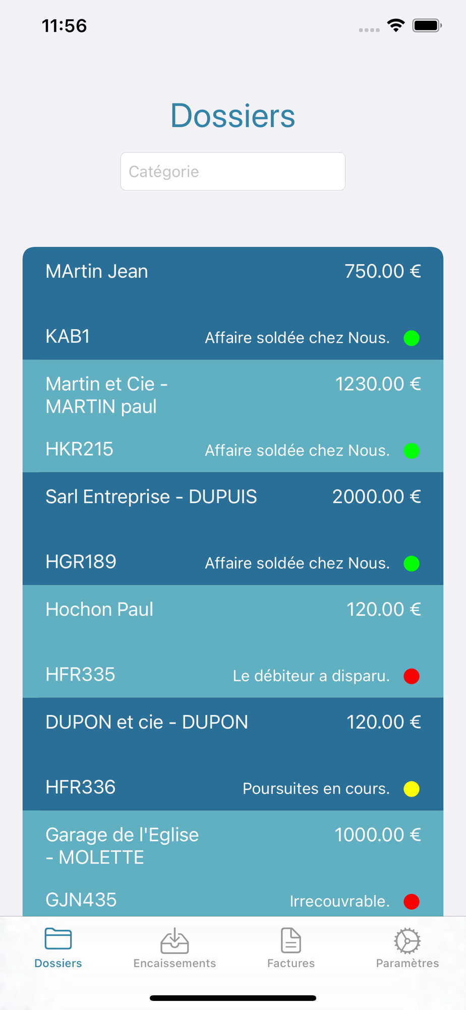 - Liste des dossiers que vous nous avez confiés en recouvrement.