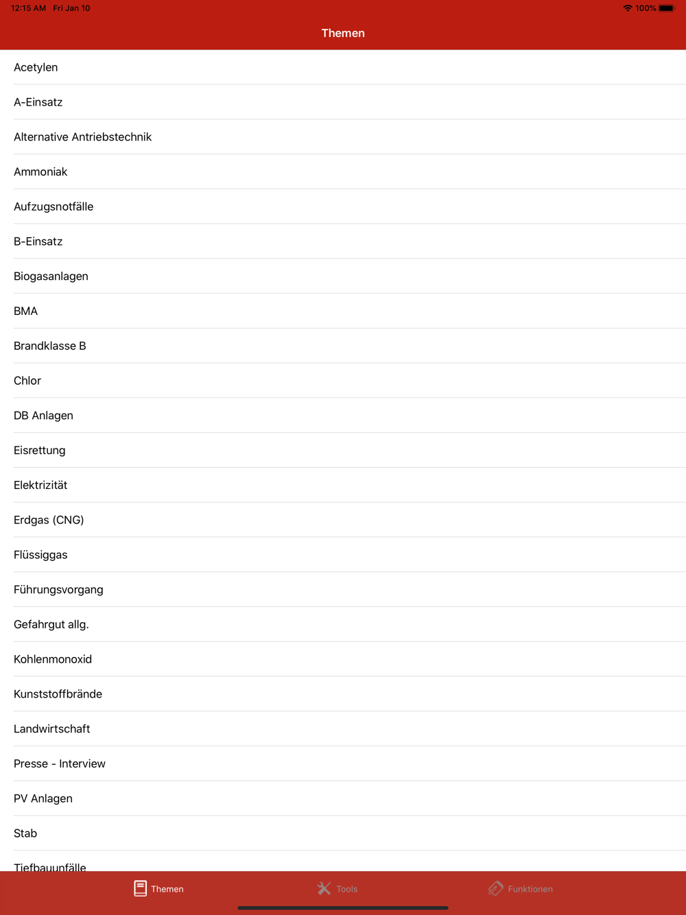 Die Anwendung basiert auf dem aktuellen Stand der Technik (FwDV, vfdb, Fachverbände) und umfasst in der Professional-Version derzeit über 30 Themenbereiche. Die Light-Version enthält eine begrenzte Auswahl an Themenbereichen.