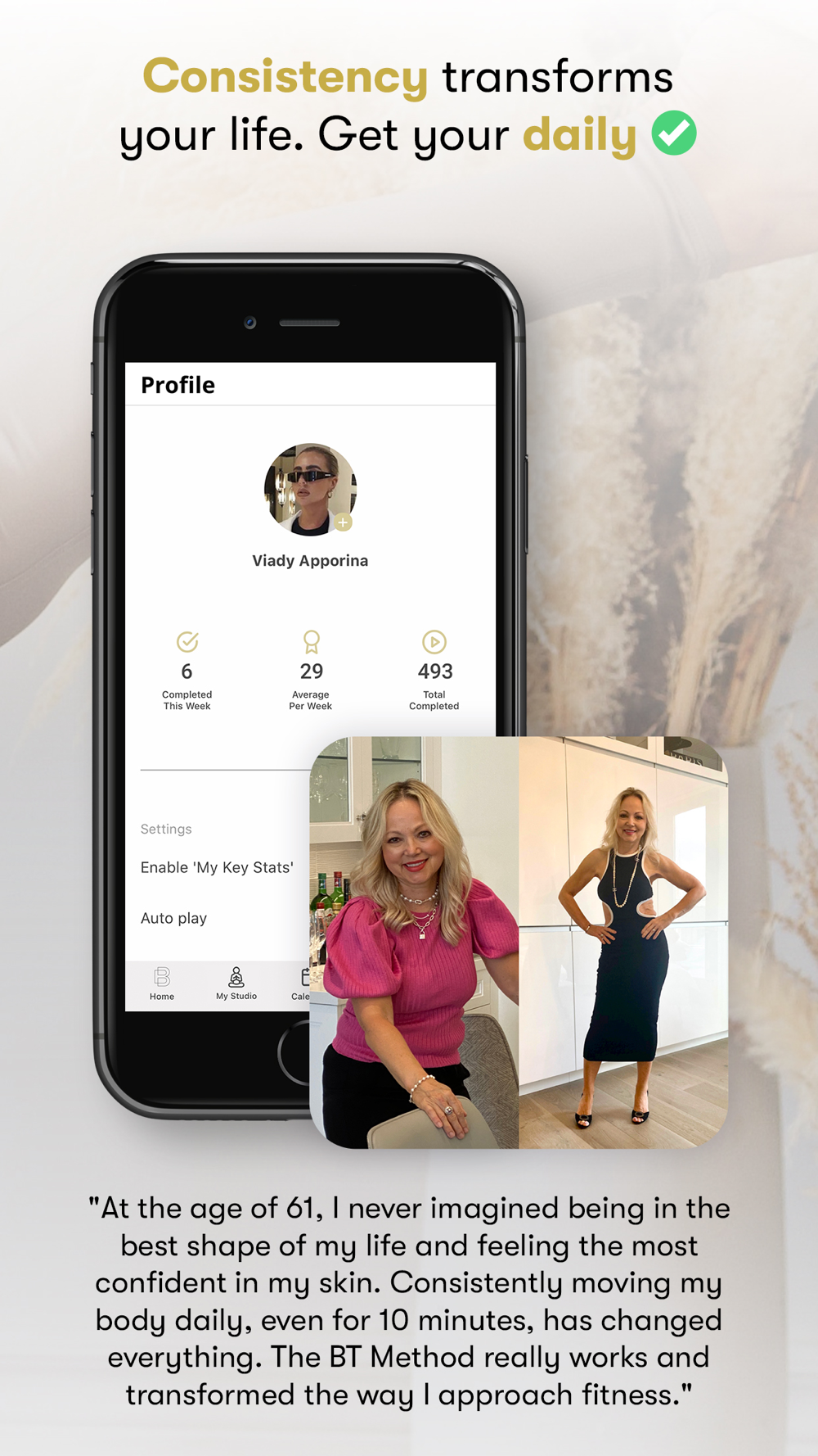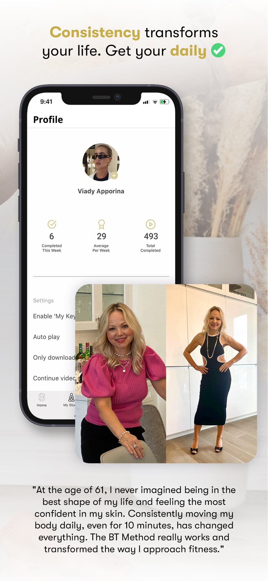 The BT Method is an intricate, full body practice. It channels your energy through focused, low-impact movements to burn, transform and sculpt your body into defined lean lines. This technique gives the classic barre workout a burning twist by intertwining elements from a variety of fitness practices. You will feel the intensity, the energy, and the strength, right in the comfort of your own home.