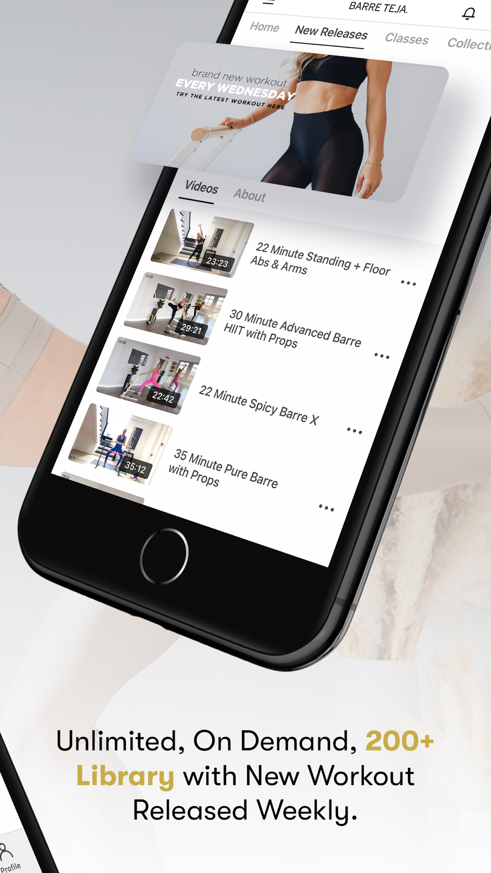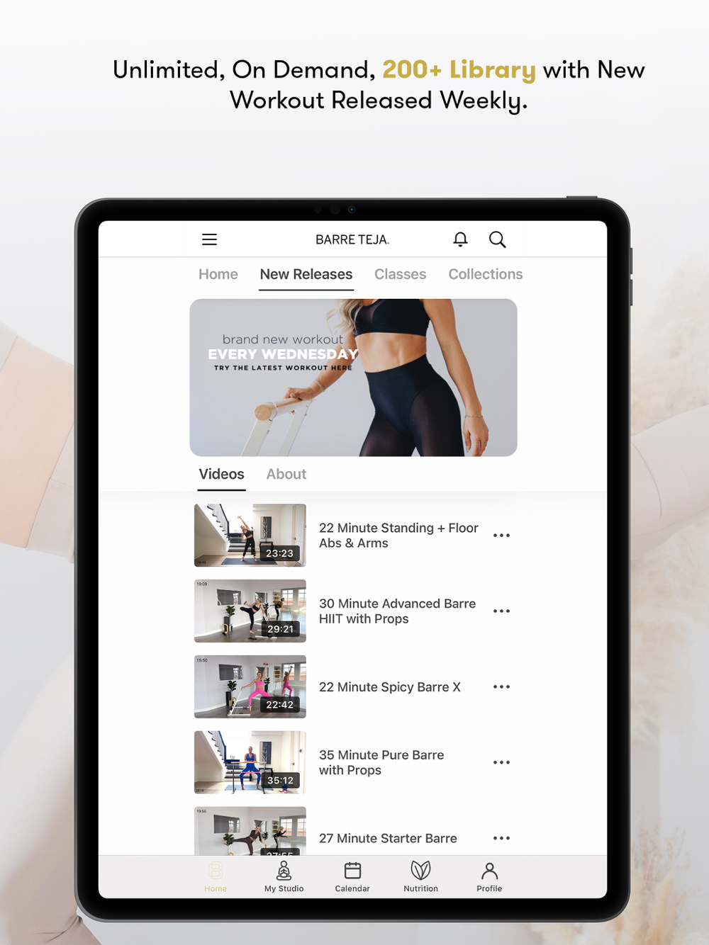 - 200+ on demand fitness workouts from Barre, HIIT, Cardio, Stretch and Sculpt