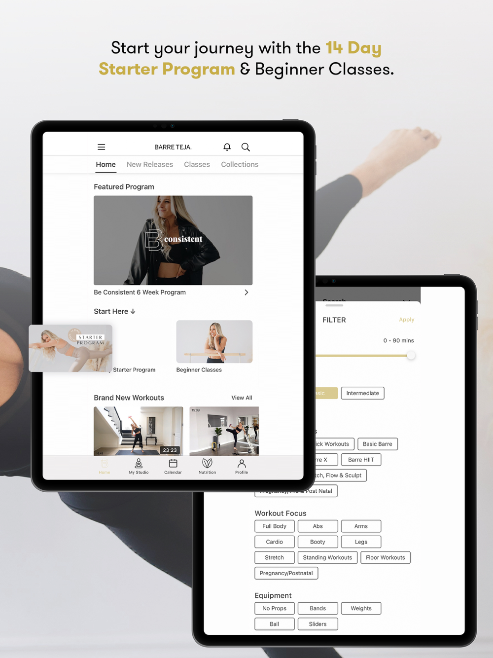 - Workouts for all levels: Starter, Basic, Intermediate, Intense