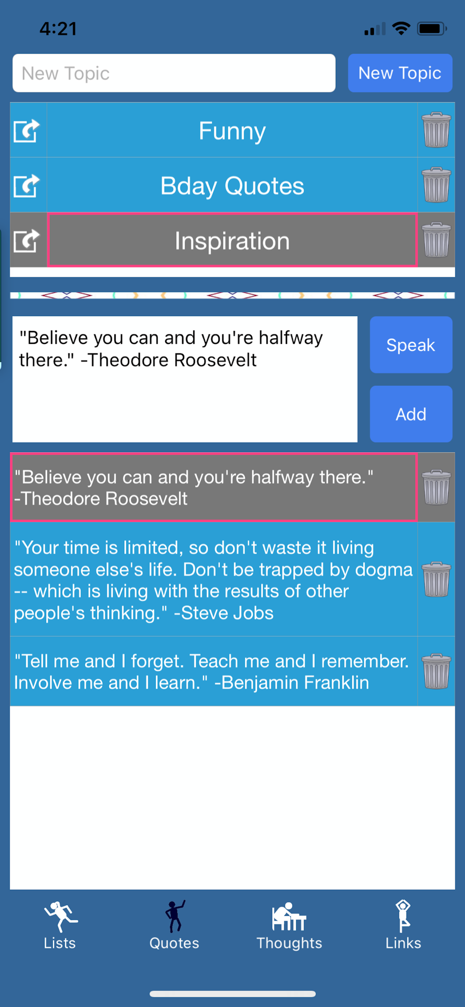 2. Created Lists, To Do's, Links, Quotes, and Thoughts.