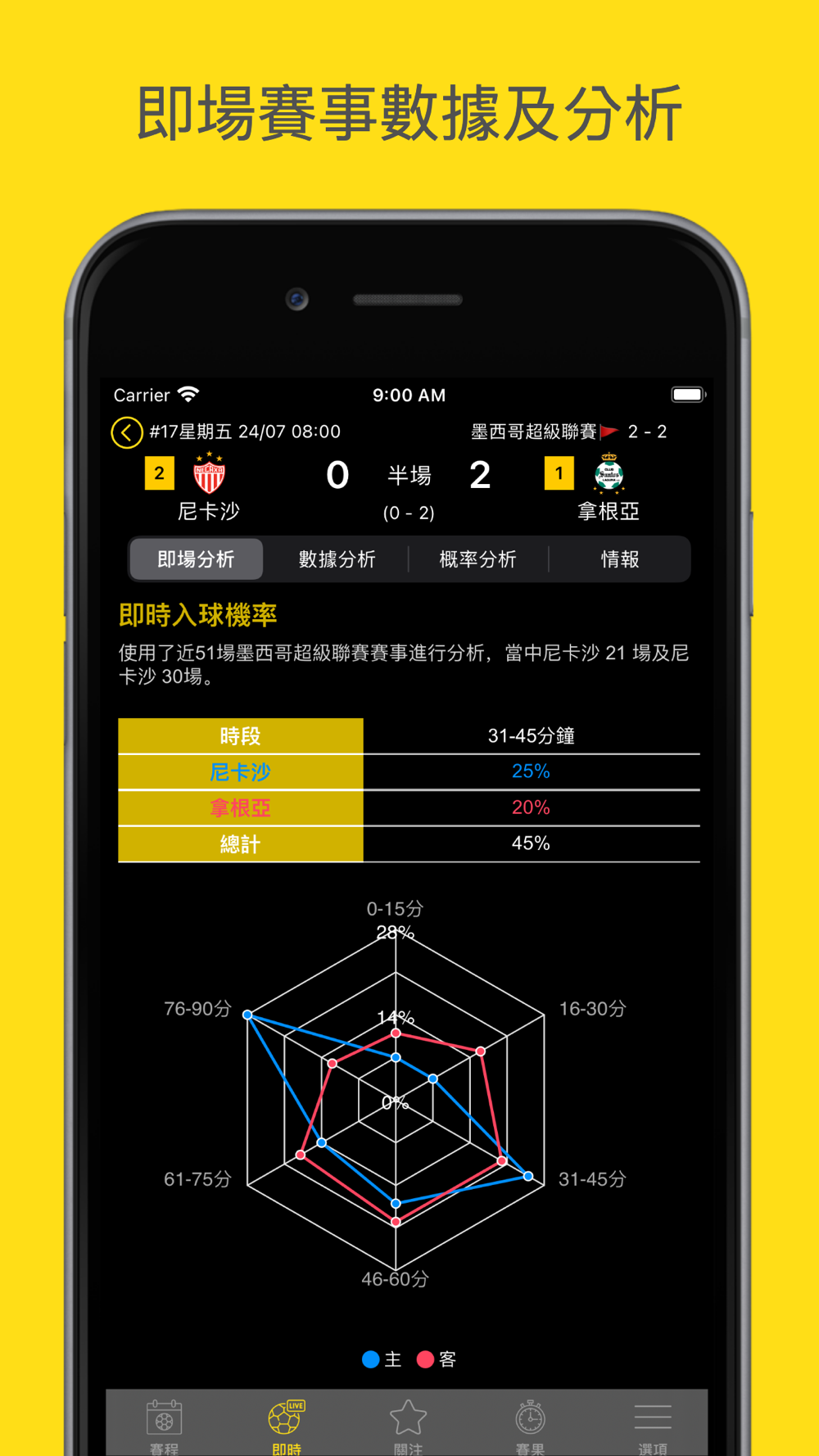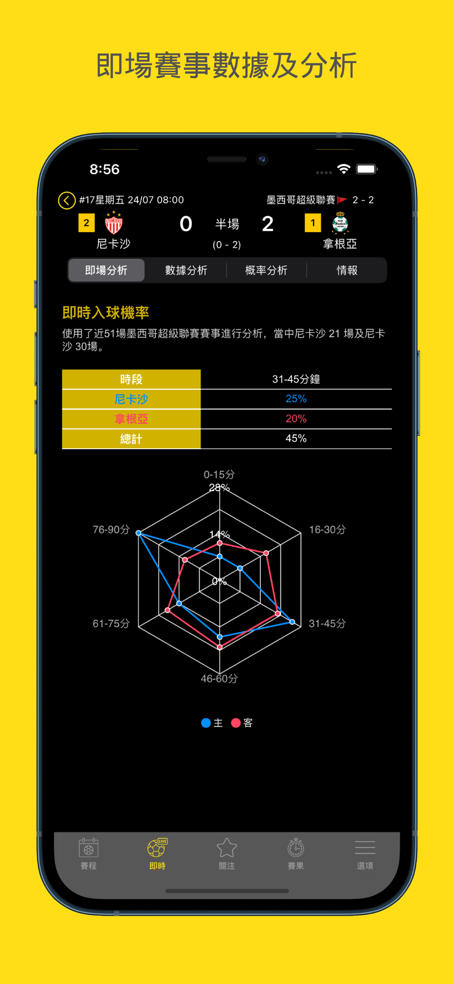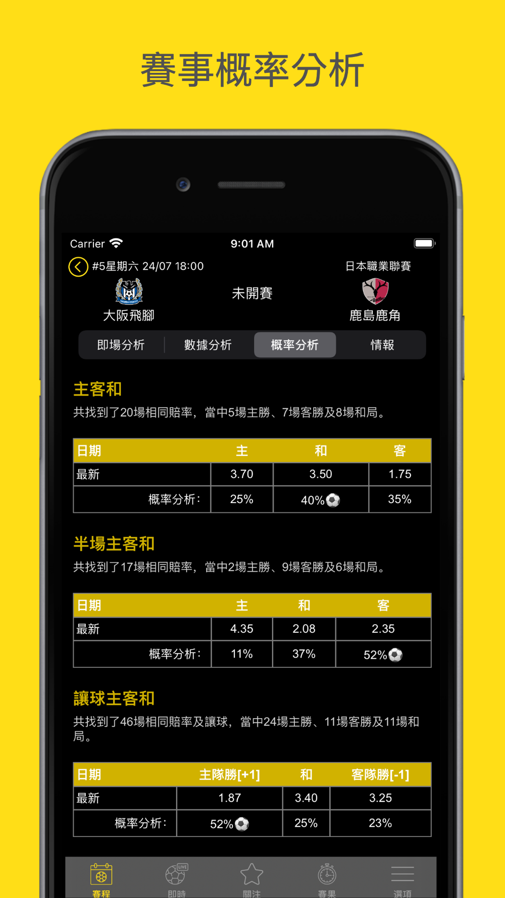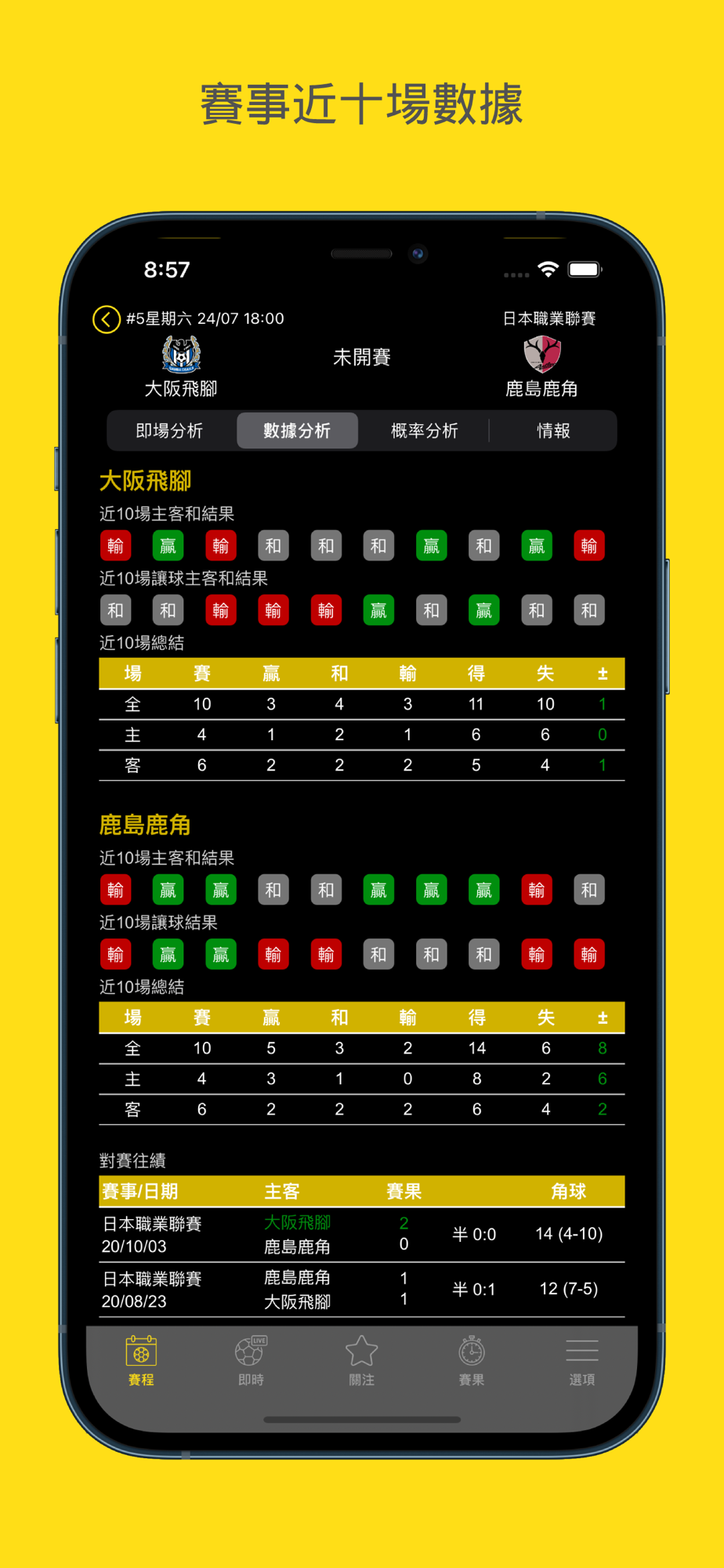 足智大數據使用過萬場賽事結果為你分析即場攻守數據、賽事大數據分析及概率走勢,助你掌握決勝機率。