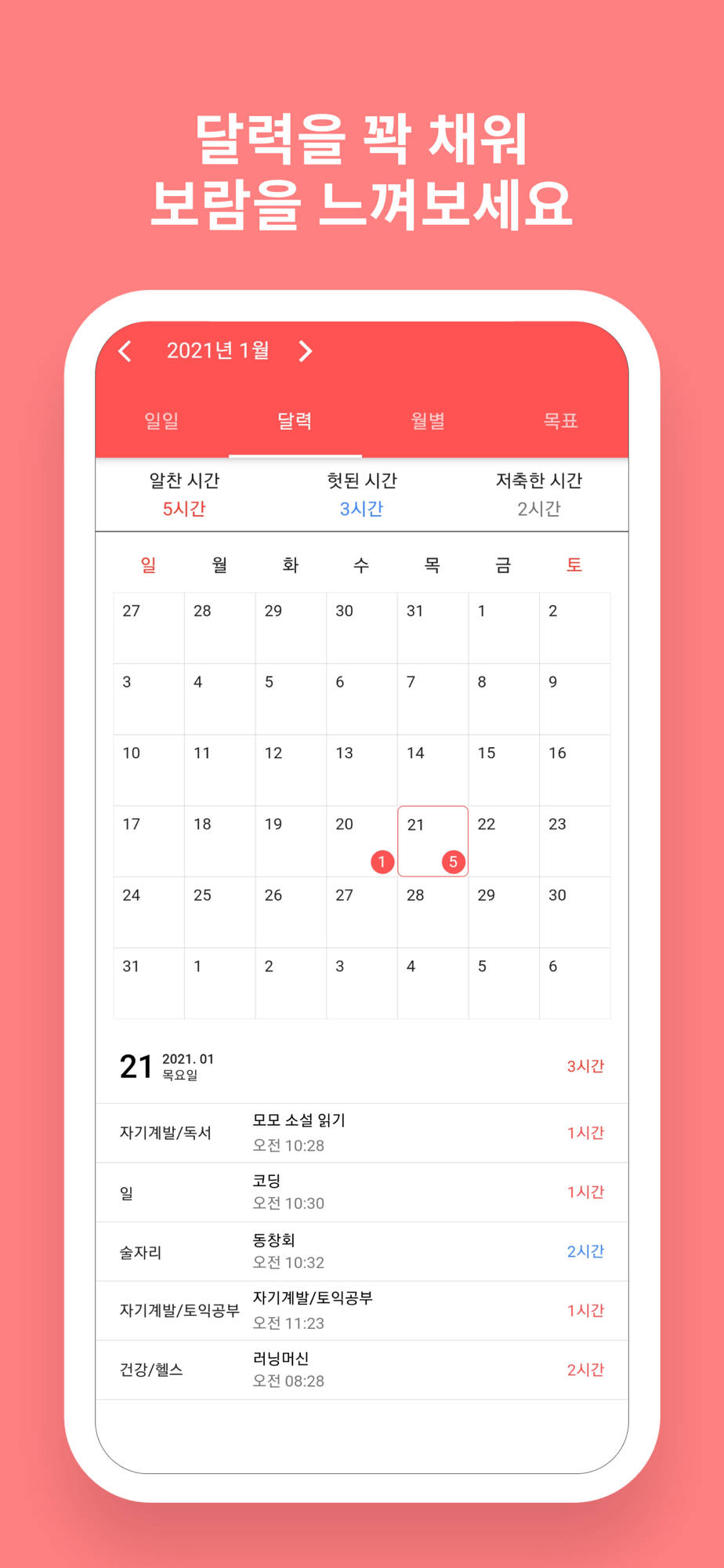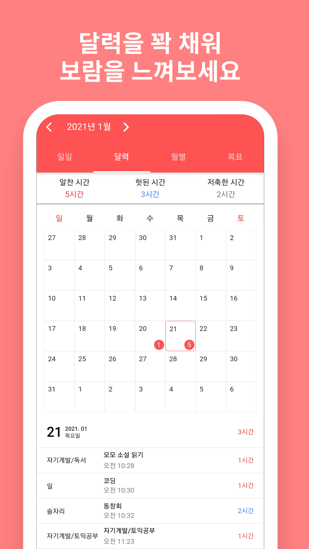 당신이 오늘 어떻게 시간을 썼는지 기록할 수 있습니다