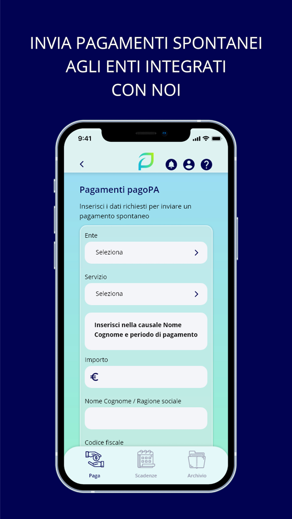 - inviare pagamenti spontanei ad oltre 800 enti integrati