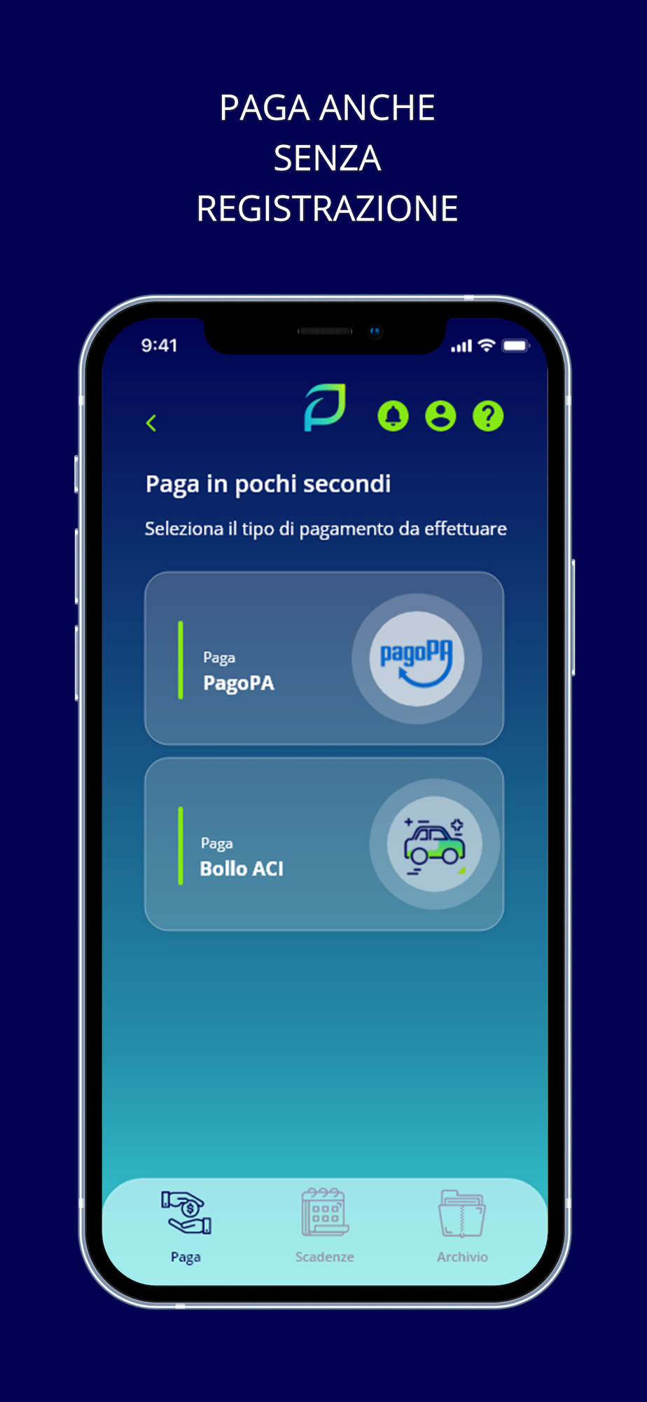 - pagare bollo auto e avvisi pagoPA in un istante
