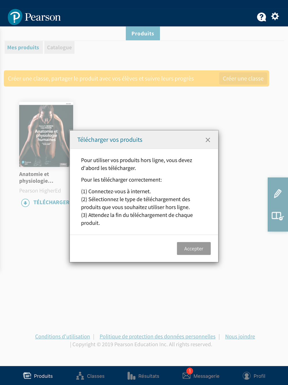 - de télécharger vos produits afin de consulter, de réviser et d’étudier sans connexion internet et de synchroniser vos travaux une fois connecté;