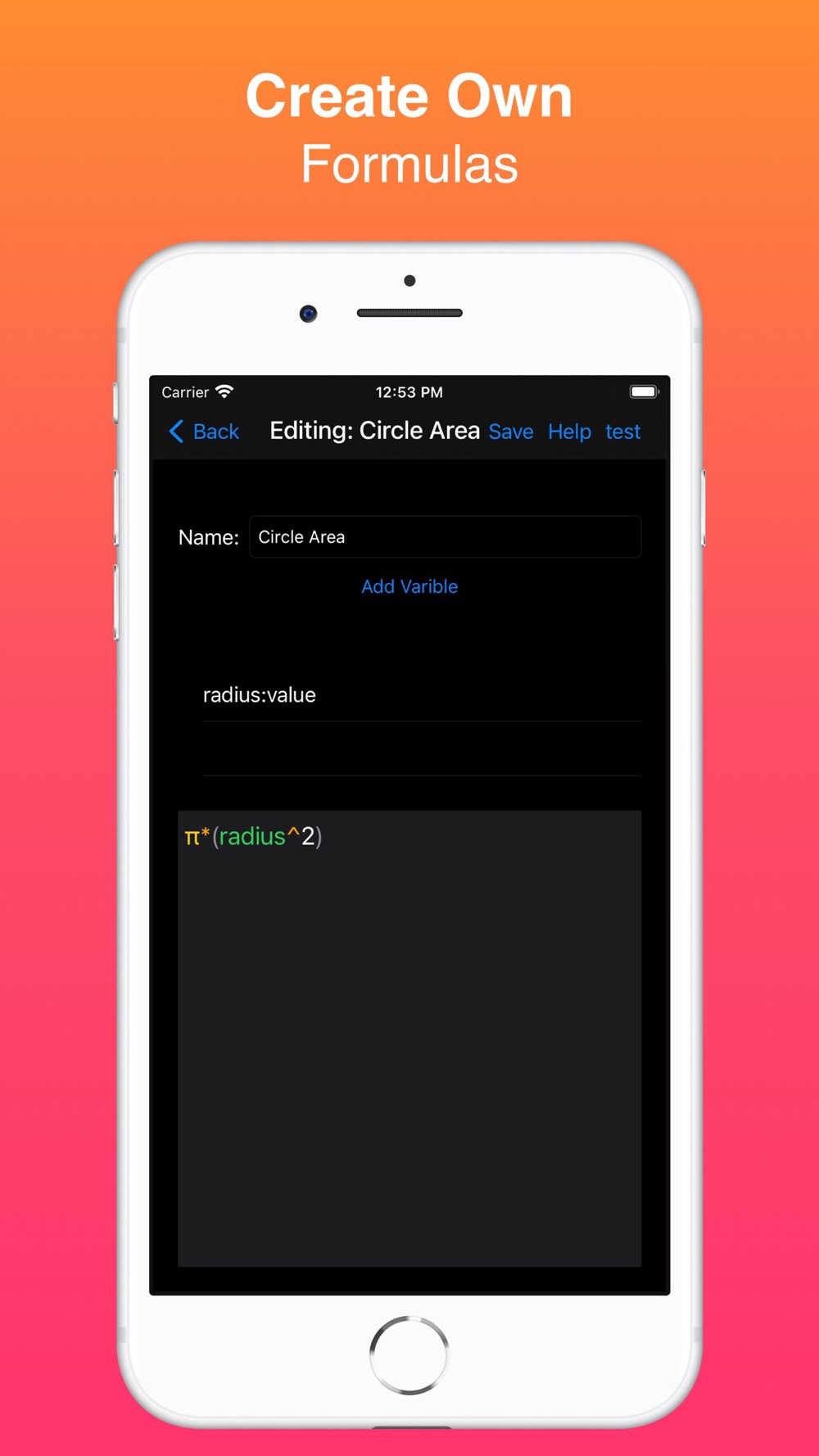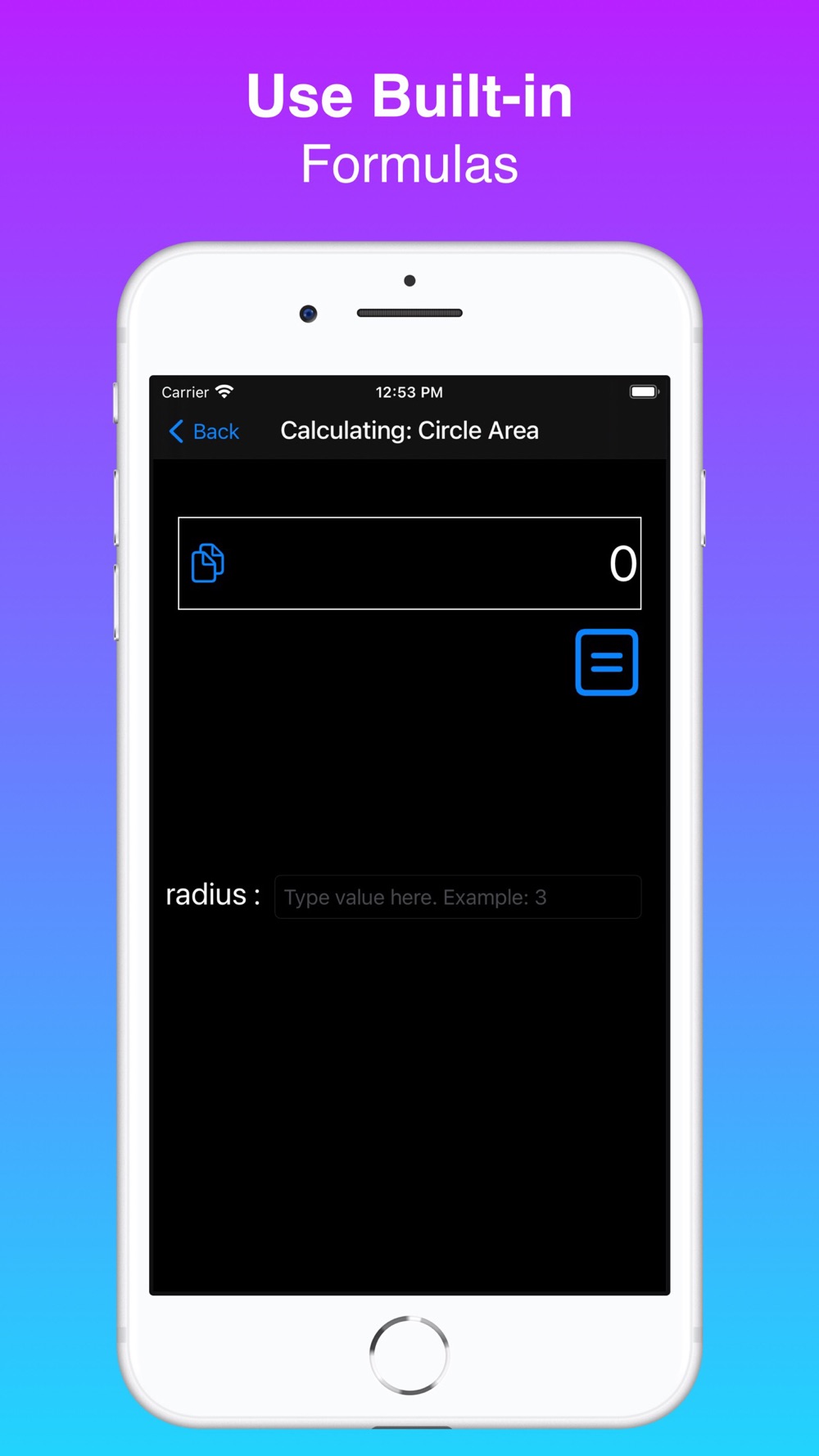 This application saves your formulas and then you can easily do the calculations you want using these formulas. After you save your formula, YOU DO NOT NEED TO REWRITE YOUR FORMULA. ONLY IT IS ENOUGH TO ENTER THE VARIABLES. So you can use the formula you want over and over again.