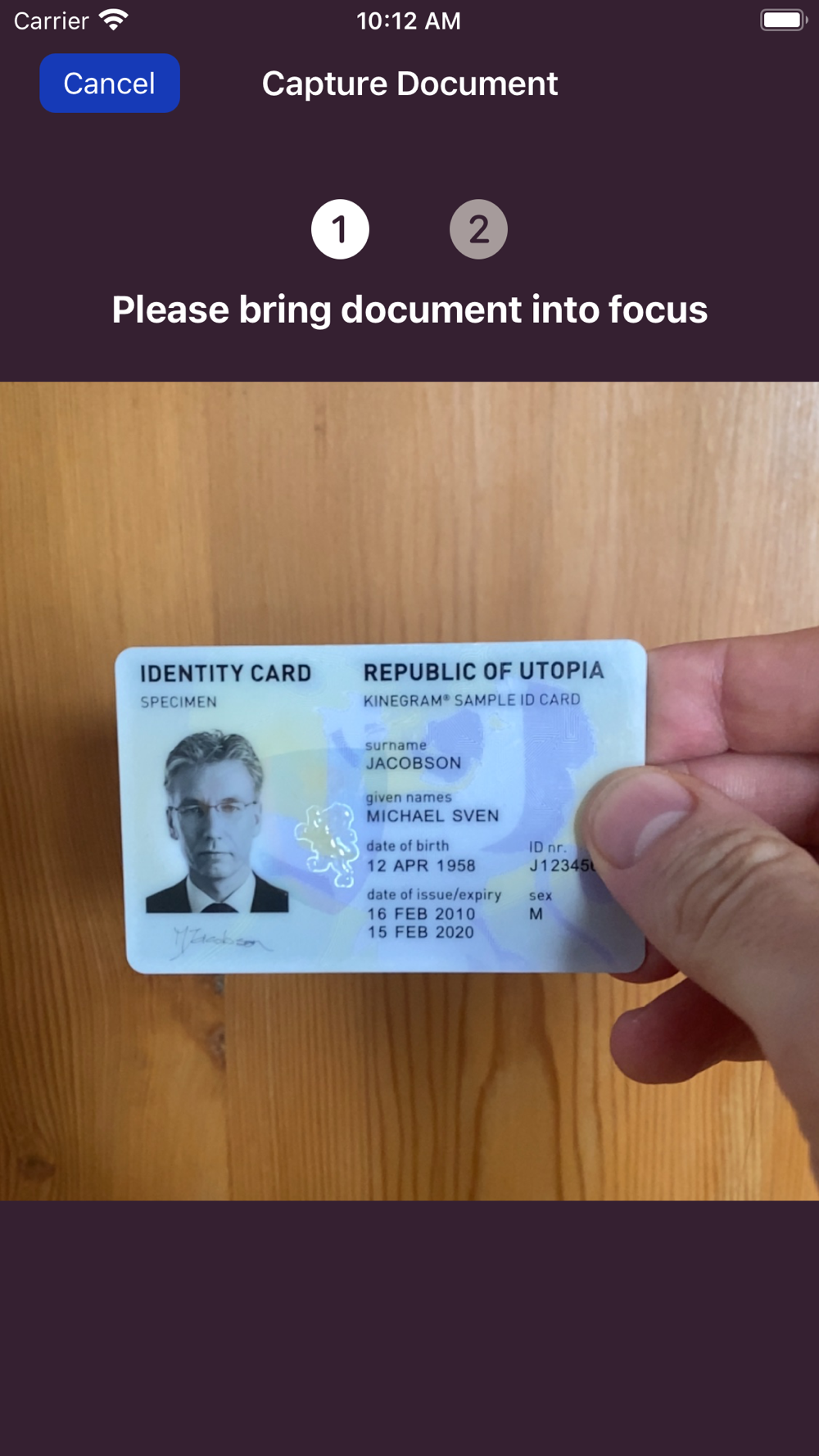This version of the app works with a generic sample card available upon request. To verify international identity documents, an SDK solution is available from OVD Kinegram – please get in touch with us at