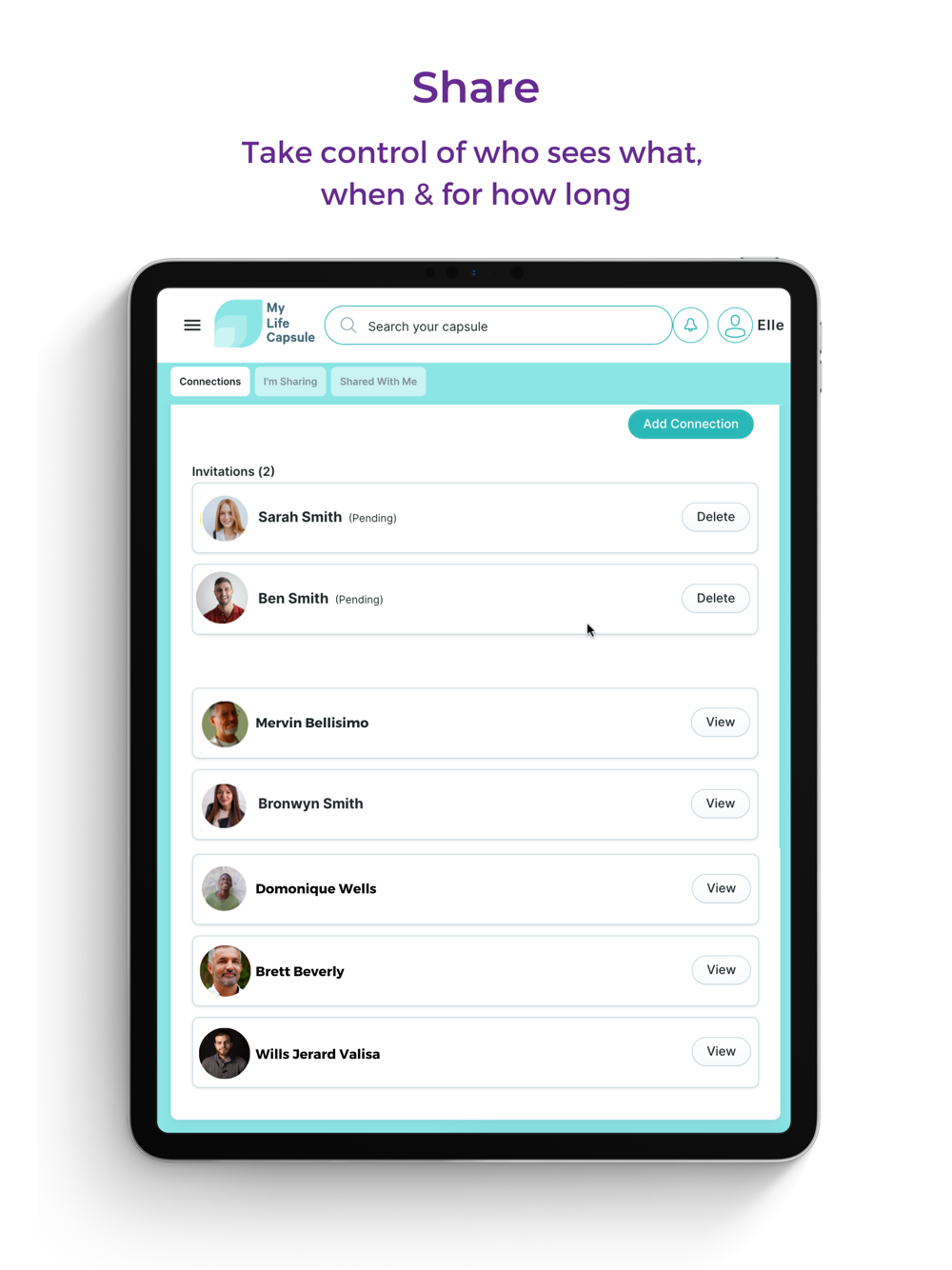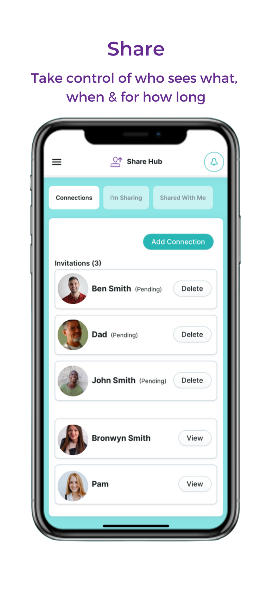 - Create trusted connections & share individual records easily, knowing it's only accessible by that person