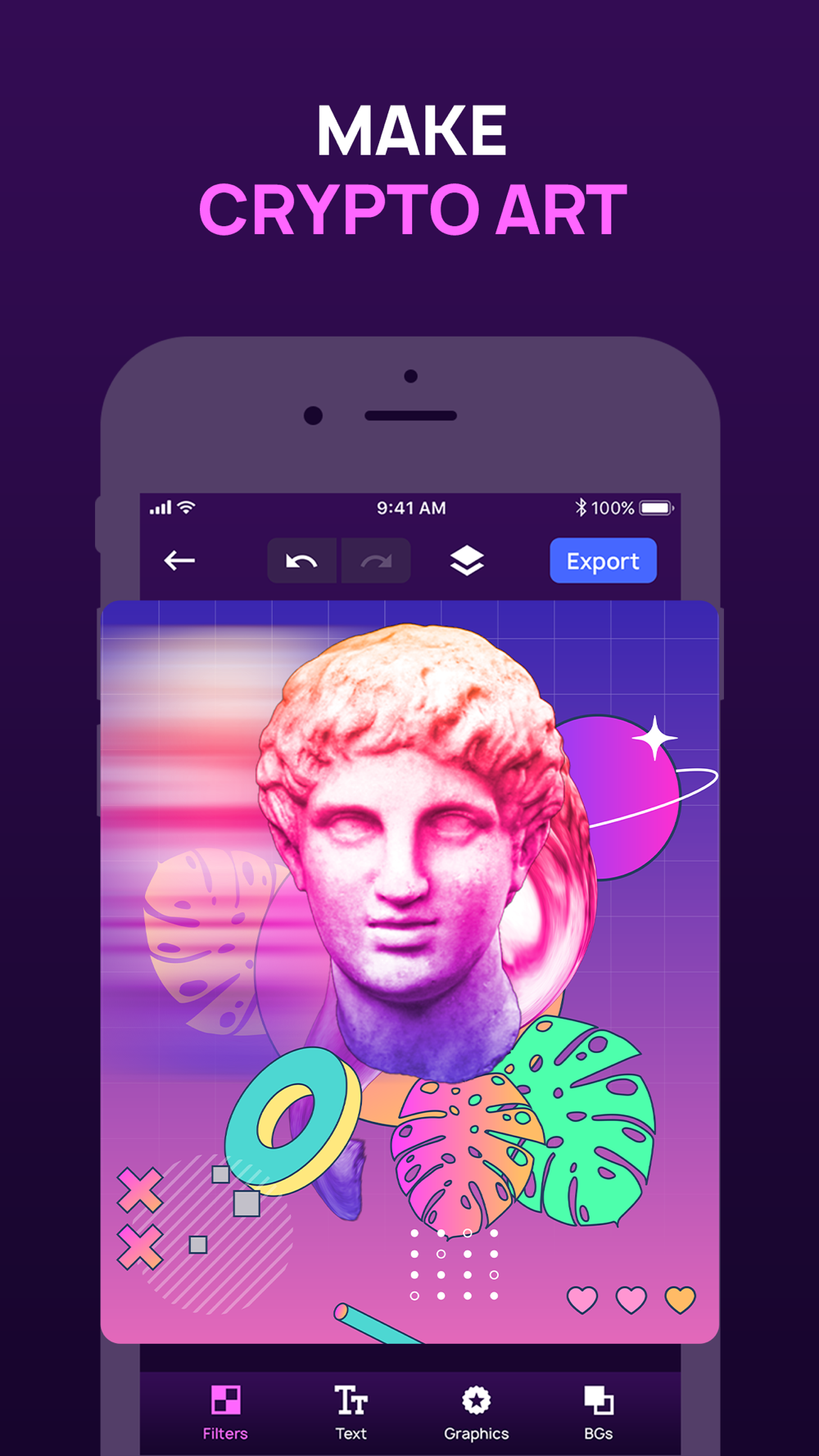 Cryptoart is the simplest app to turn your pictures into crypto art.