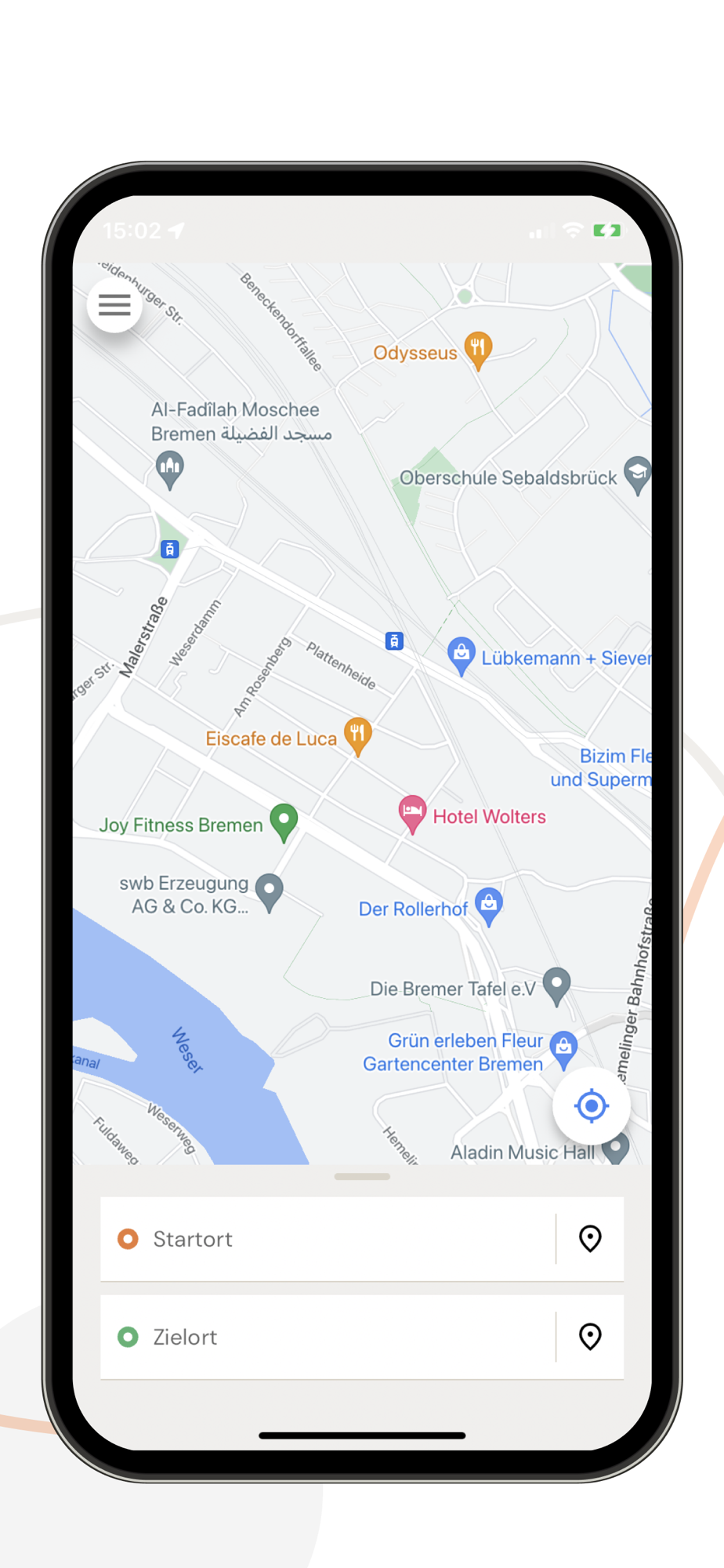 The E-Taxi app is very simple, fast and easy to use. For example, the user has 4 destination options, you can set your own favourite destinations or search for popular destinations in your area. E-Taxi has focus on the movement of people in Africa, so the user can choose between a "shared taxi" or a "private taxi". You can plan your journey alone or with friends and simply let the driver know in the app.