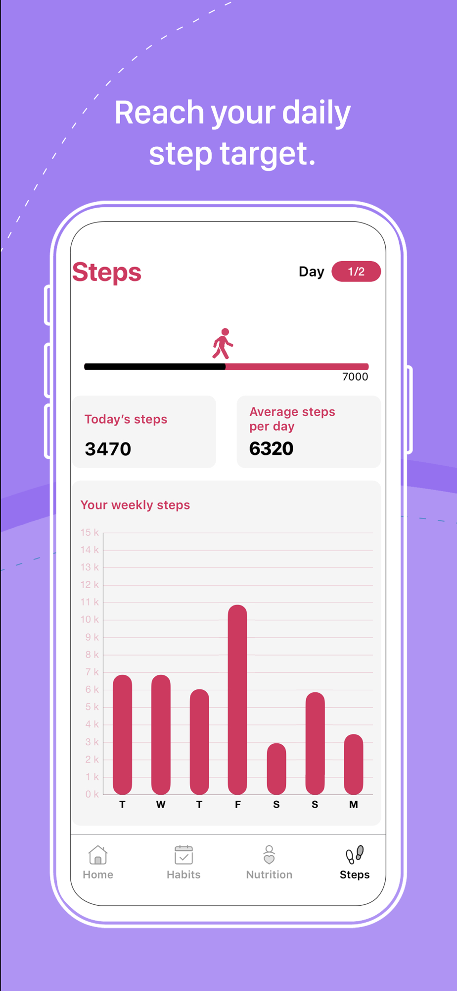 Take a set number of steps to complete your Steps goal that day. The number of steps you need to walk will increase with each progressive level, as will the number of days you need to walk this number of steps. Achiever is integrated with the Apple Health app to track your steps. Walking is perhaps the easiest way to exercise, and is a remarkably effective way to develop a healthy lifestyle and lose weight, so making it a core part of your daily routine is key to our programme.