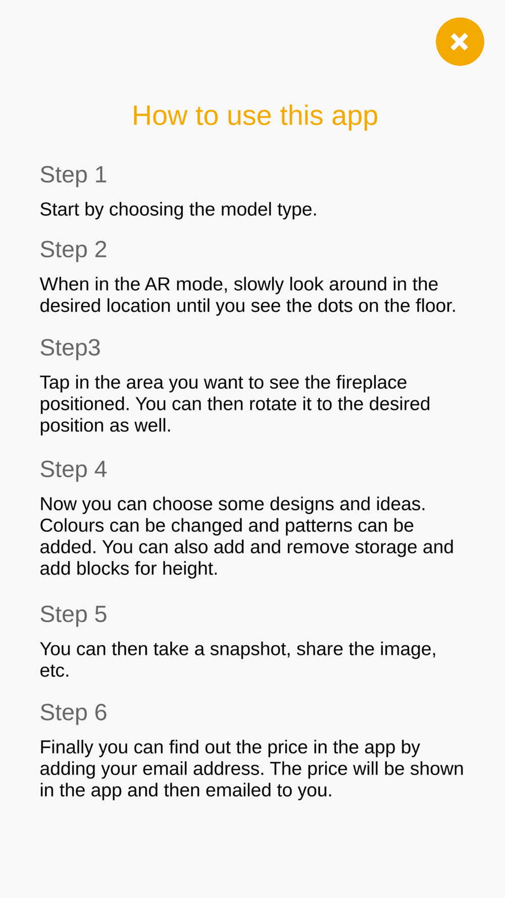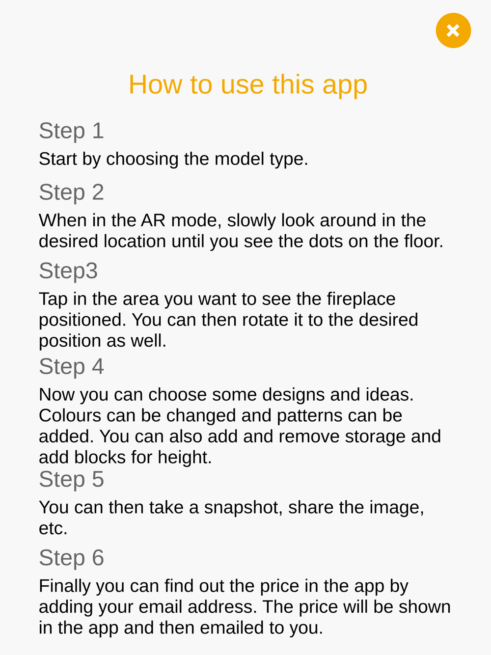 This fantastic app helps you along the way by allowing you to scan an area with your phone and place the fireplace there. You can change the colour to match your ideal design and add stencil patterns to it. It is also possible to add and remove log stores and make it higher with additional blocks within the app. You can then walk up and around it and take a screenshot to record different ideas.