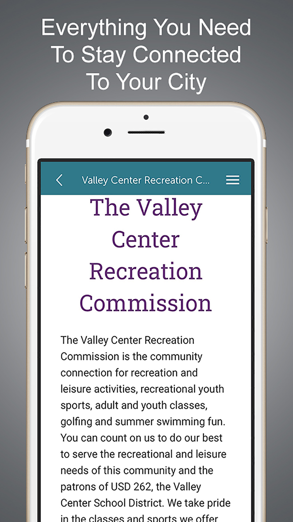 Download your city's app and start engaging with the City of Valley Center, KS on a more meaningful level. Become a civic resident today!