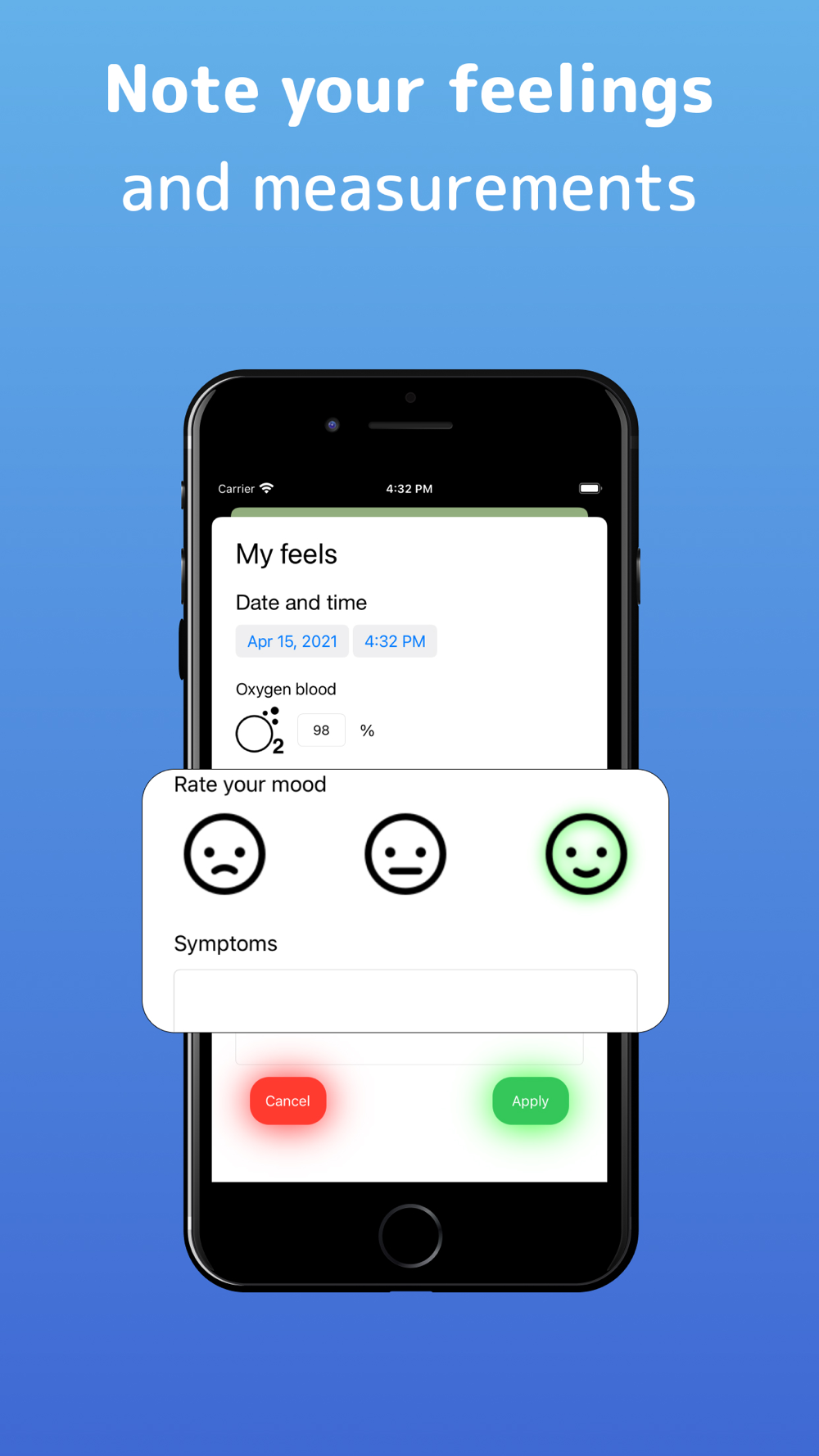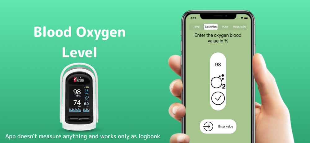 This is assistant with your health notes - make measurements of temperature, pressure, oxygen blood level and breath rates and fill this data into the app. This app will become an excellent assistant in monitoring your health if you regularly enter your measurements into it and use it as a health notebook.