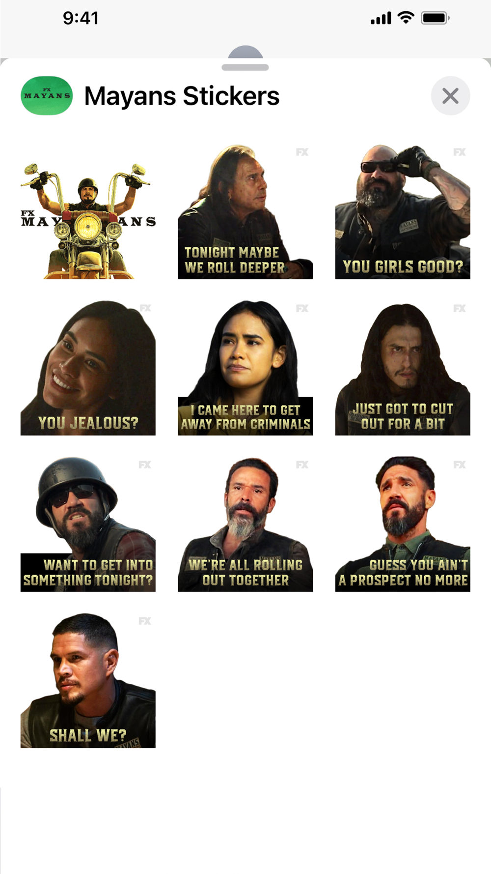 Throttle up your conversations and shift them into a higher gear with stickers inspired by the FX original series, Mayans M.C. With stickers that feature everything from EZ’s charm to Angel’s intensity, you’ll be sure to transform your group chat into a wild ride.