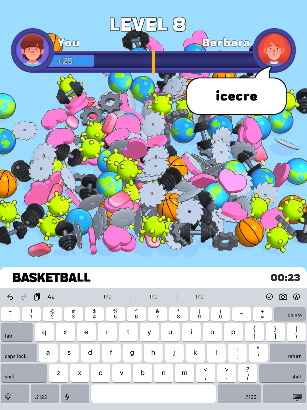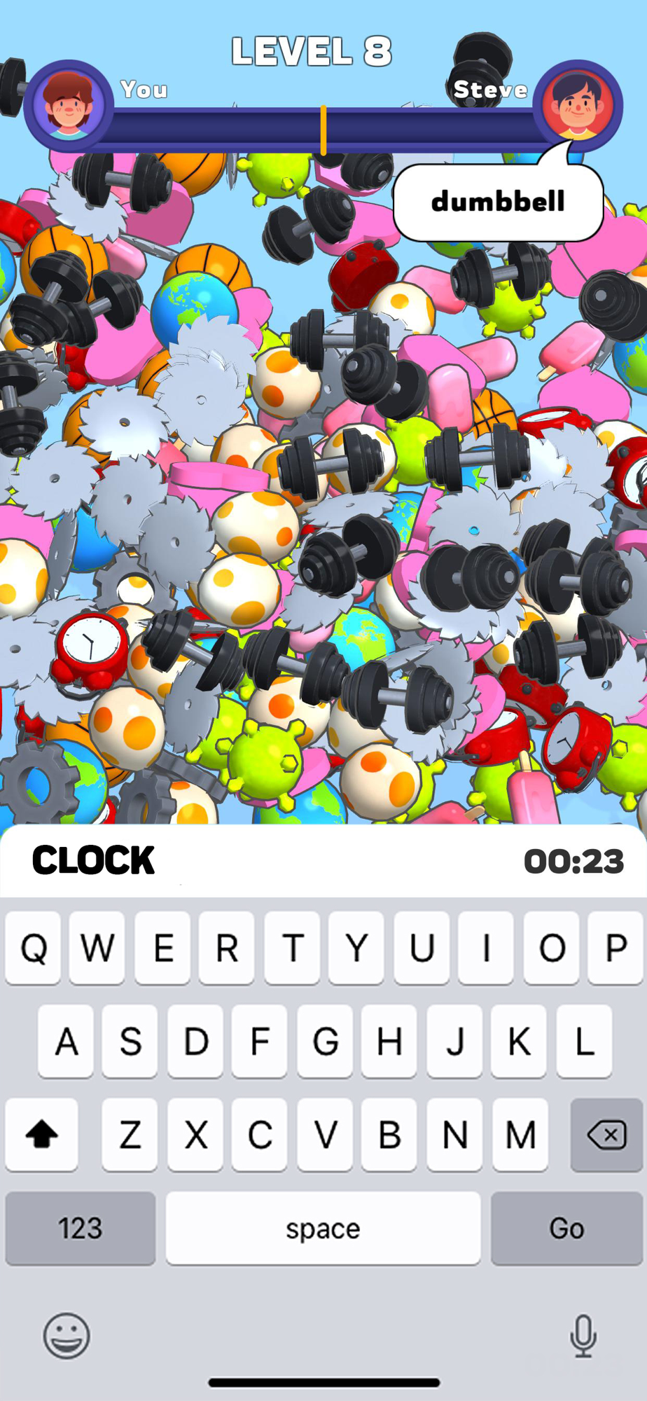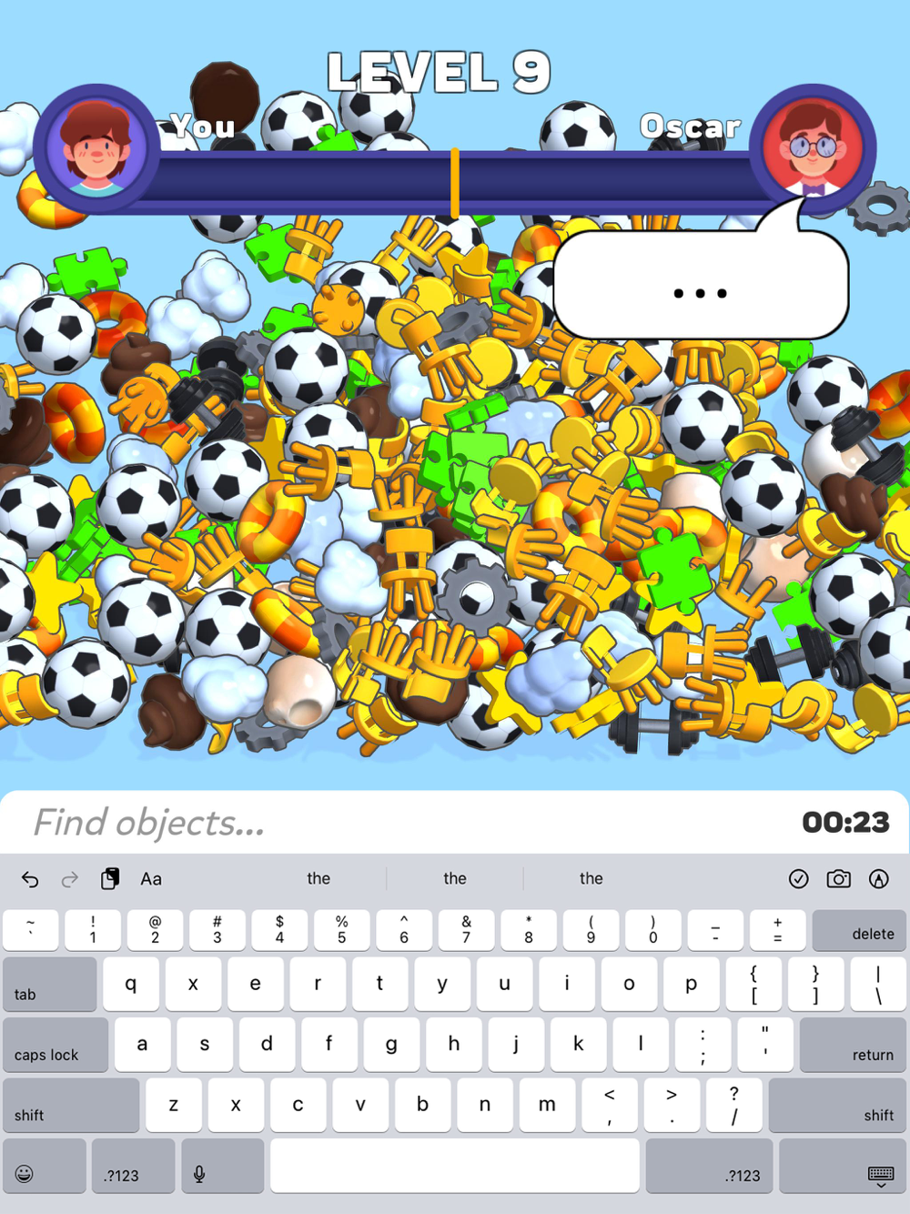 Watch out the heap! Just write the name of the object you see the largest number. Collect as much as you can before time runs out to defeat your opponent.