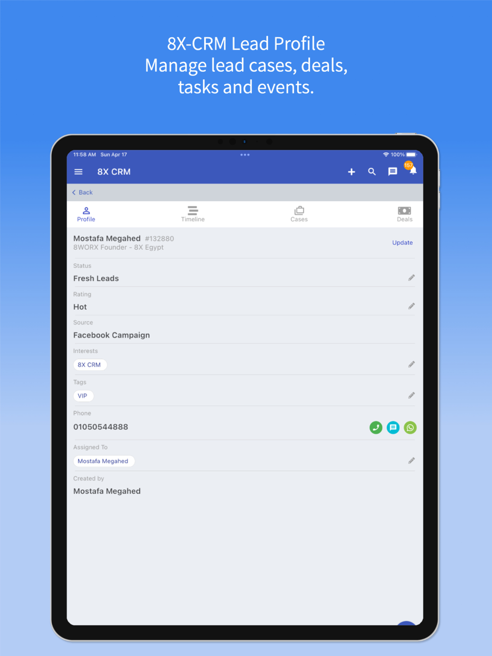 › All edits are automatically synced with your 8X CRM web app, so your customer data is always up to date.