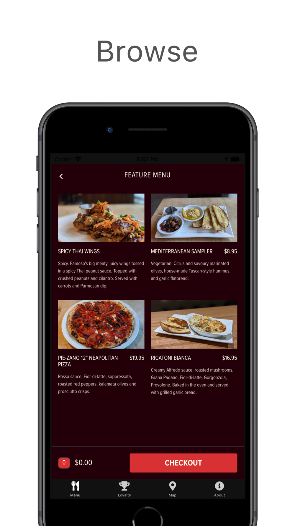 Welcome to Famoso Pizzeria's mobile ordering app. Customise and order anything from our delicious menu.