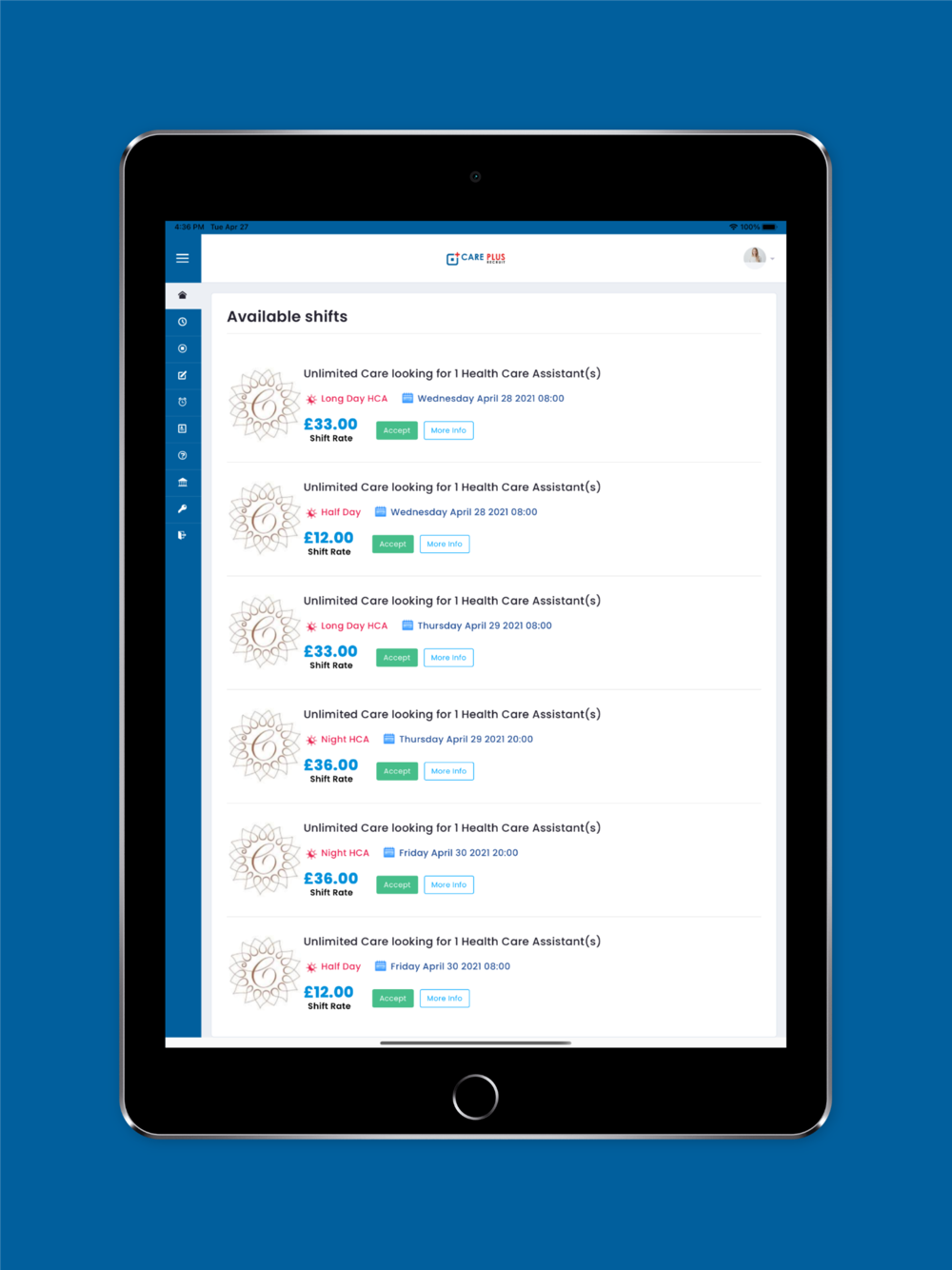 Care Plus Recruit app helps nurses, carers and other medical staff to create an account, upload their certificates and maintain current fit to practice status. Care homes and hospitals can post shifts through the app for fast and easy notification to the allocated staff to view available vacancies and accept shifts. The app also helps the staff and employers to see their respective work history, payment history, timesheets etc.