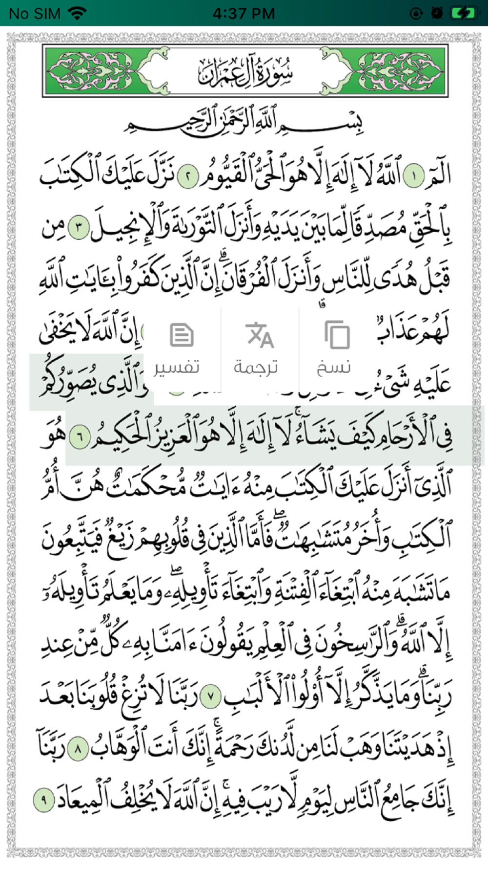 - Share any verse from the Holy Quran through the social networks
