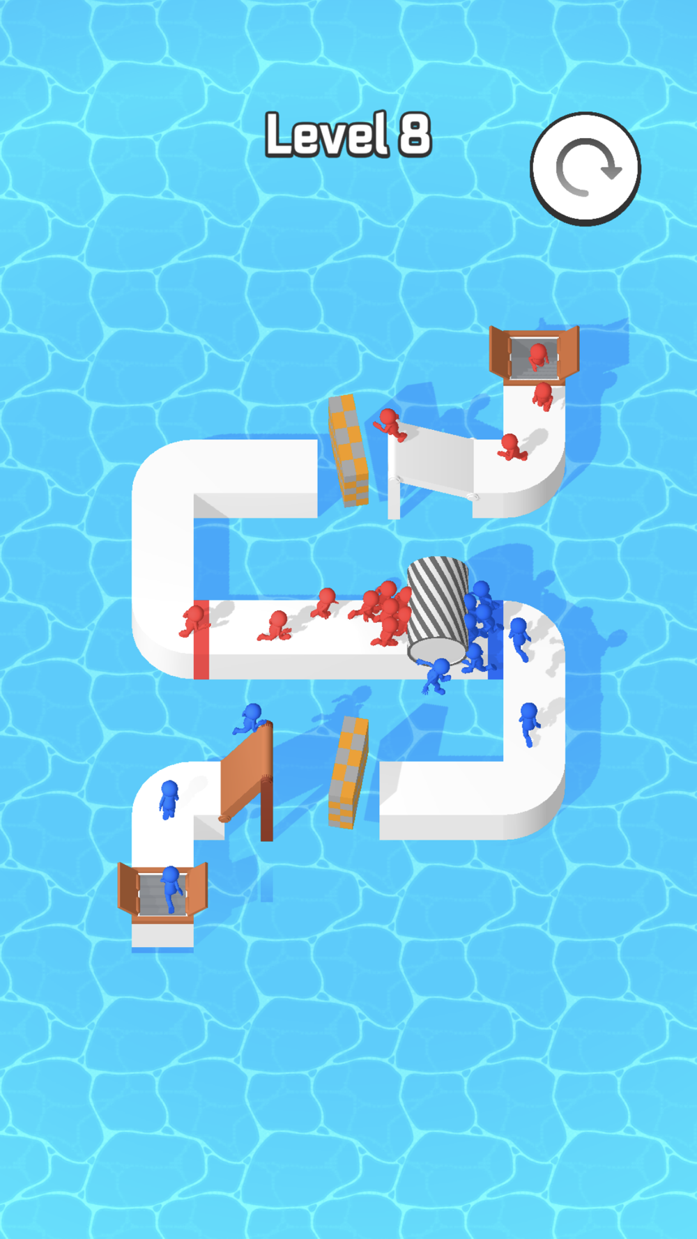 Control ramps to reach the finish line and engage enemy lines. Slide them up and down and save as many as you can.