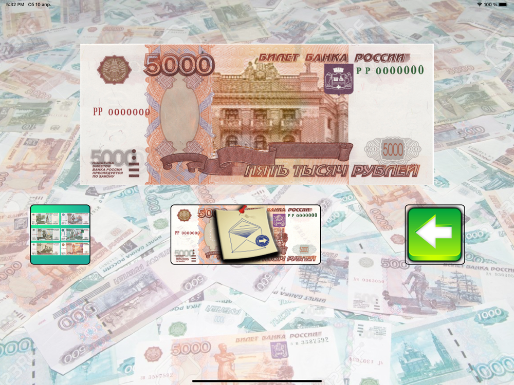 In the application, you can both create your own versions of banknotes, and use from an existing collection of memorable places, buildings, monuments in the Russian Federation.