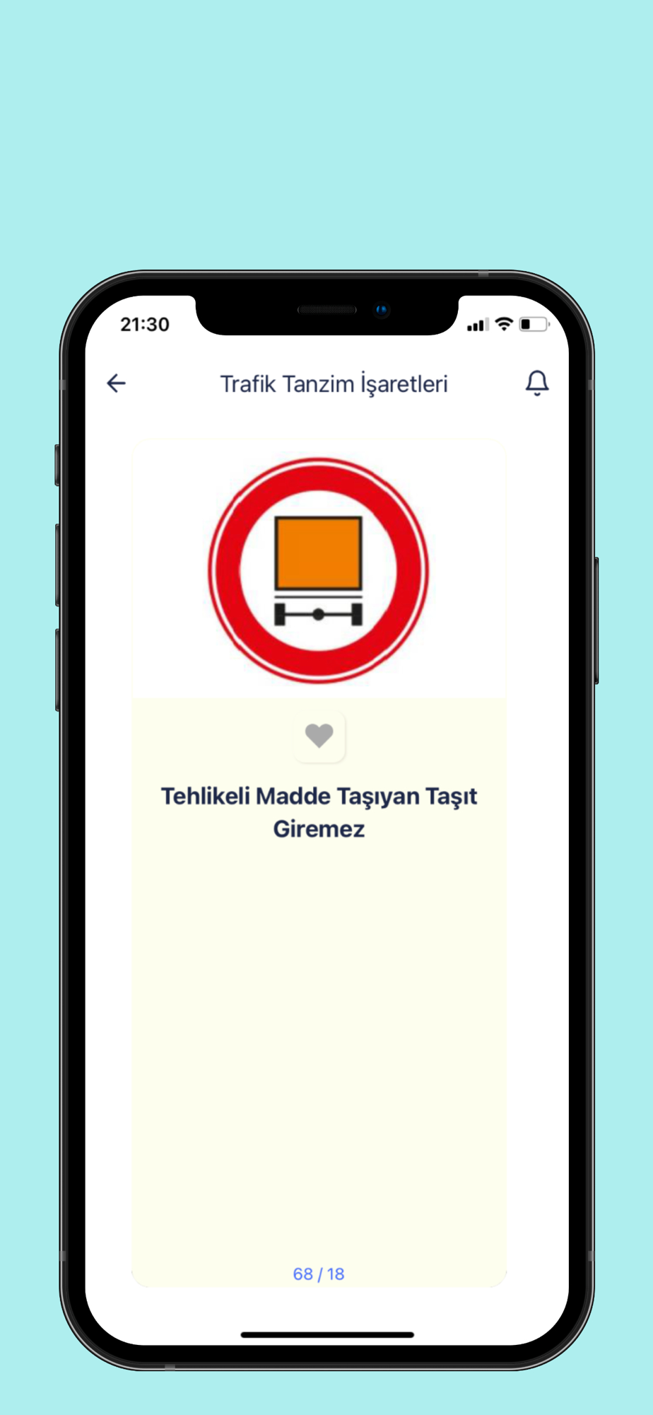 Eksiksiz olarak hazırladığımız trafik işaretleri kategorisinden bütün trafik levhalarını yana kaydırarak çalışabilirsiniz. Ayrıca bütün trafik işaretleri ve trafik levhaları ile ilgili test çözebilirsiniz.