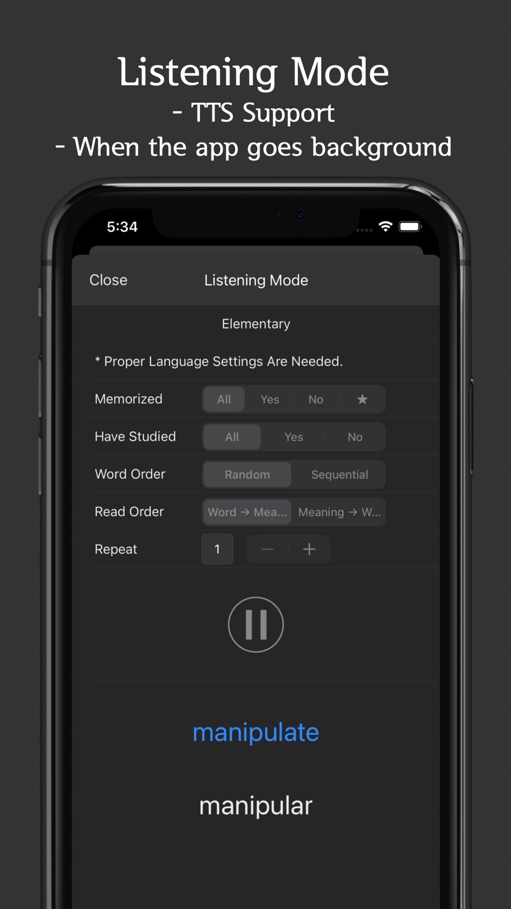 - comfortable dark mode, quiz-modes, push alarm at time user sets